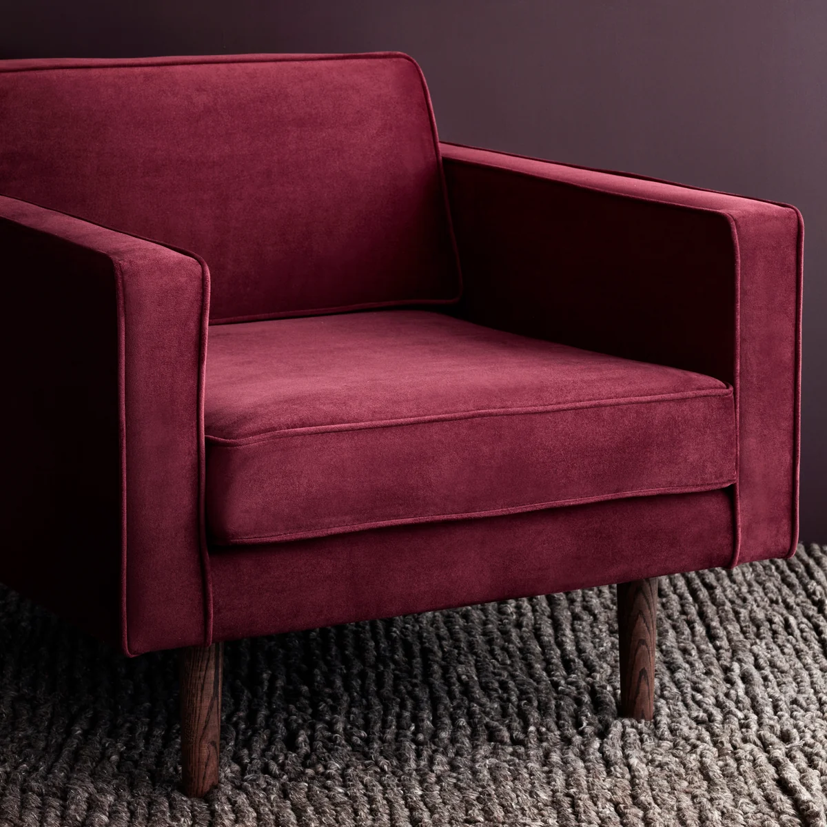 Le fauteuil Wind fauteuil de Broste Copenhagen se distingue par son design anguleux qui lui donne un aspect à la fois classique et anguleux. La large assise ainsi que le dossier et les accoudoirs rembourrés assurent un confort agréable. Les pieds étroits de forme conique donnent au fauteuil un aspect aérien et léger. Des pieds supplémentaires sont disponibles en tant qu'accessoires, ce qui permet de les remplacer facilement en cas de besoin. Le fauteuil est disponible en différents coloris et types de tissus conformes à l'Oeko-Tex® Standard 100.