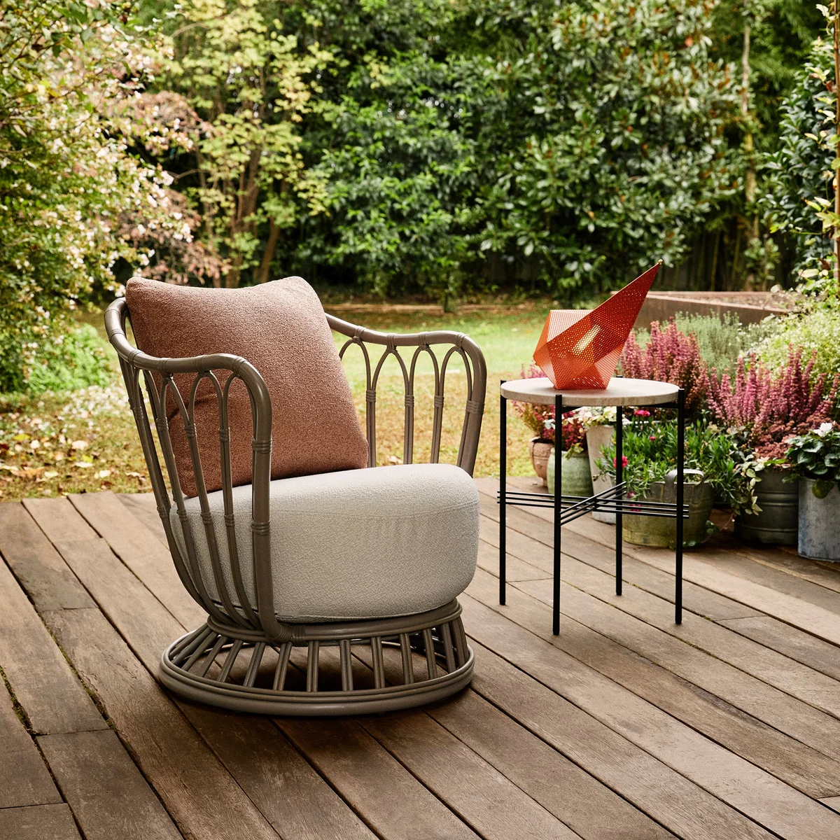 La Grace Outdoor Lounge Chair, conçue à l'origine par Tove Kindt-Larsen en 1936, compte aujourd'hui parmi les produits phares de la collection Gubi . La nouvelle variante outdoor transpose son élégance sculpturale et son esthétique proche de la nature à l'extérieur - interprétée de manière moderne avec du rotin synthétique résistant aux intempéries, tressé sur un cadre en aluminium revêtu par poudre. Malgré sa construction robuste, la Grace Outdoor Lounge Chair reste légère et flexible d'utilisation - que ce soit sur la terrasse, dans le jardin d'hiver ou même à l'intérieur. Disponible en noir, blanc et gris, elle est équipée d'un profond coussin d'assise recouvert d'un tissu résistant aux intempéries, qui assure confort et style par tous les temps.