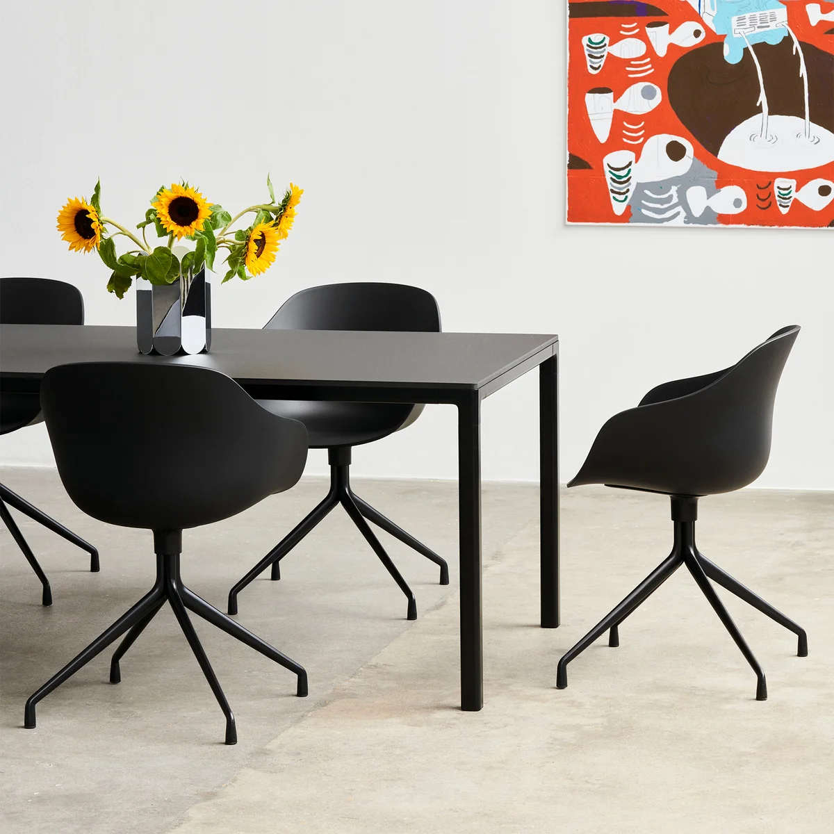 Selon les idées du designer Hee Welling, les chaises About A Chair devraient se sentir à l'aise aussi bien dans un restaurant ou une cantine qu'au bureau, à la table de la salle à manger ou à la table de conférence. Dans ce contexte, l'idée de simplicité est devenue un gage de multifonctionnalité et de combinabilité.
