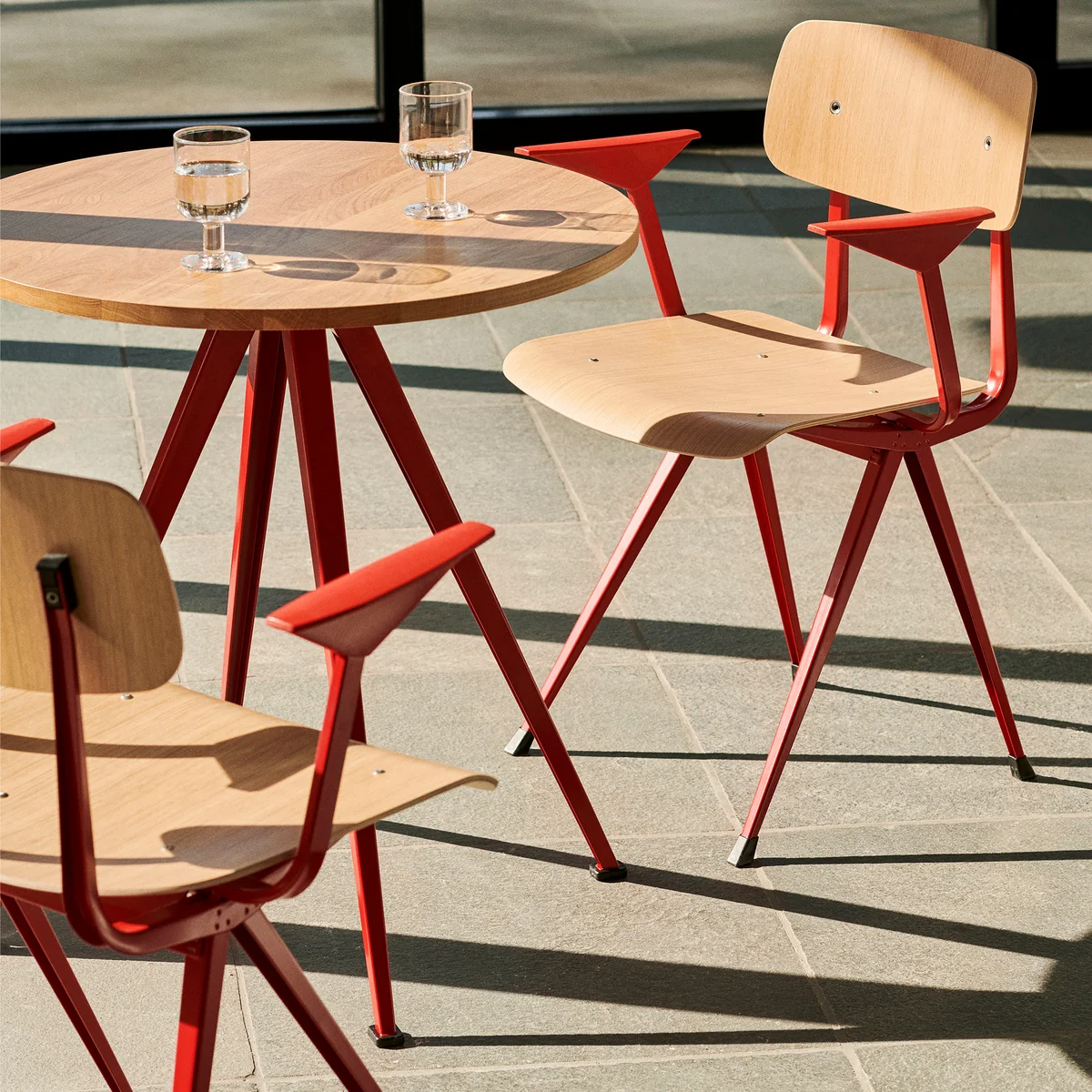 La chaise Result chaise à accoudoirs de la maison HAY est un must-have emblématique du fabricant danois. À l'origine, la Result chaise a été conçue par Friso Kramer et Wim Rietveld dans les années 1950. La version revisitée est disponible en différentes finitions de bois et couleurs de piètement. Le piètement élancé en tôle d'acier lui confère un look sobre. Selon les préférences, il est possible de Result peut être combiné avec l'intérieur dans des couleurs plus sobres ou plus voyantes.
