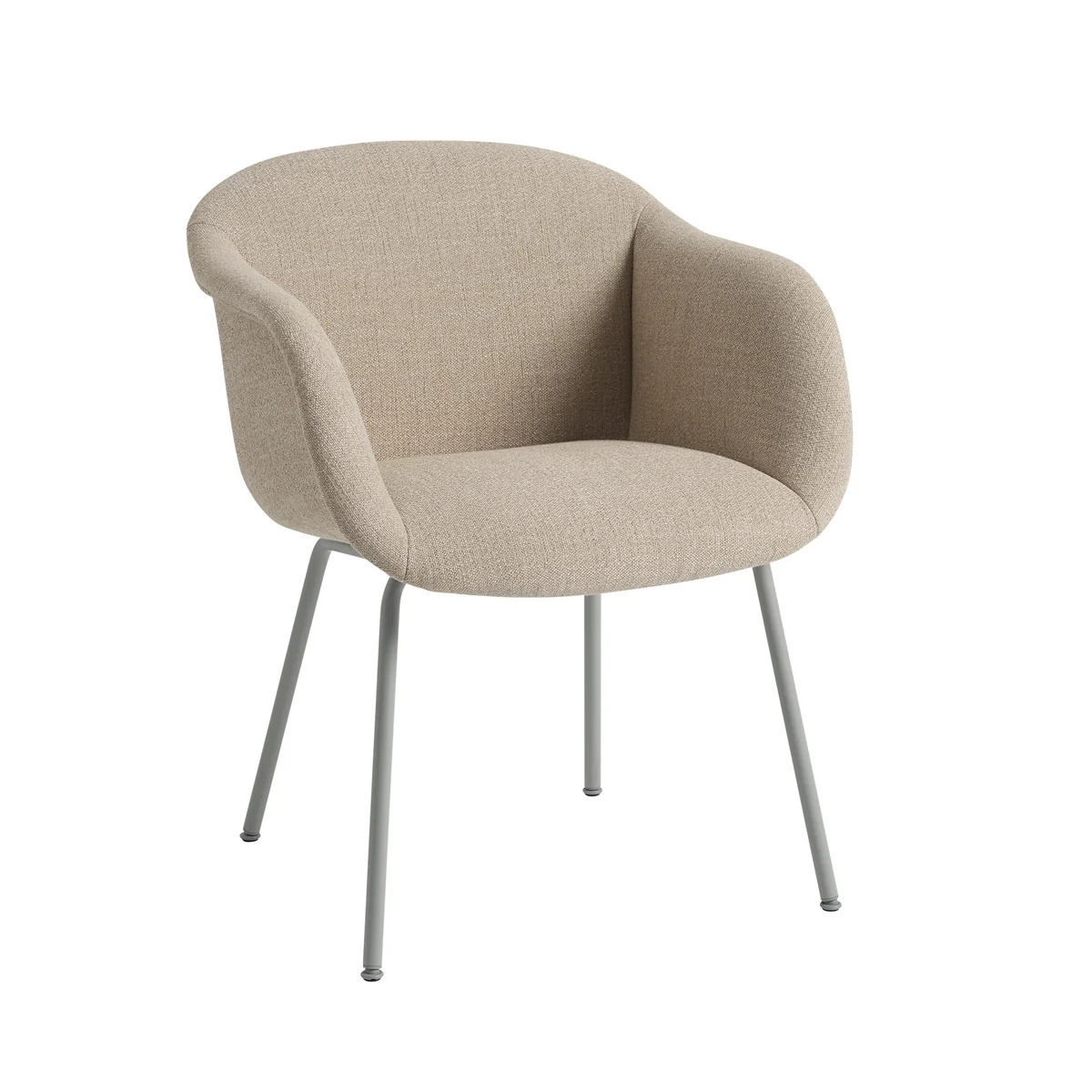 Muuto - Fiber Soft Chaise avec accoudoirs, gris / beige (tissu Kvadrat Ecriture 240)