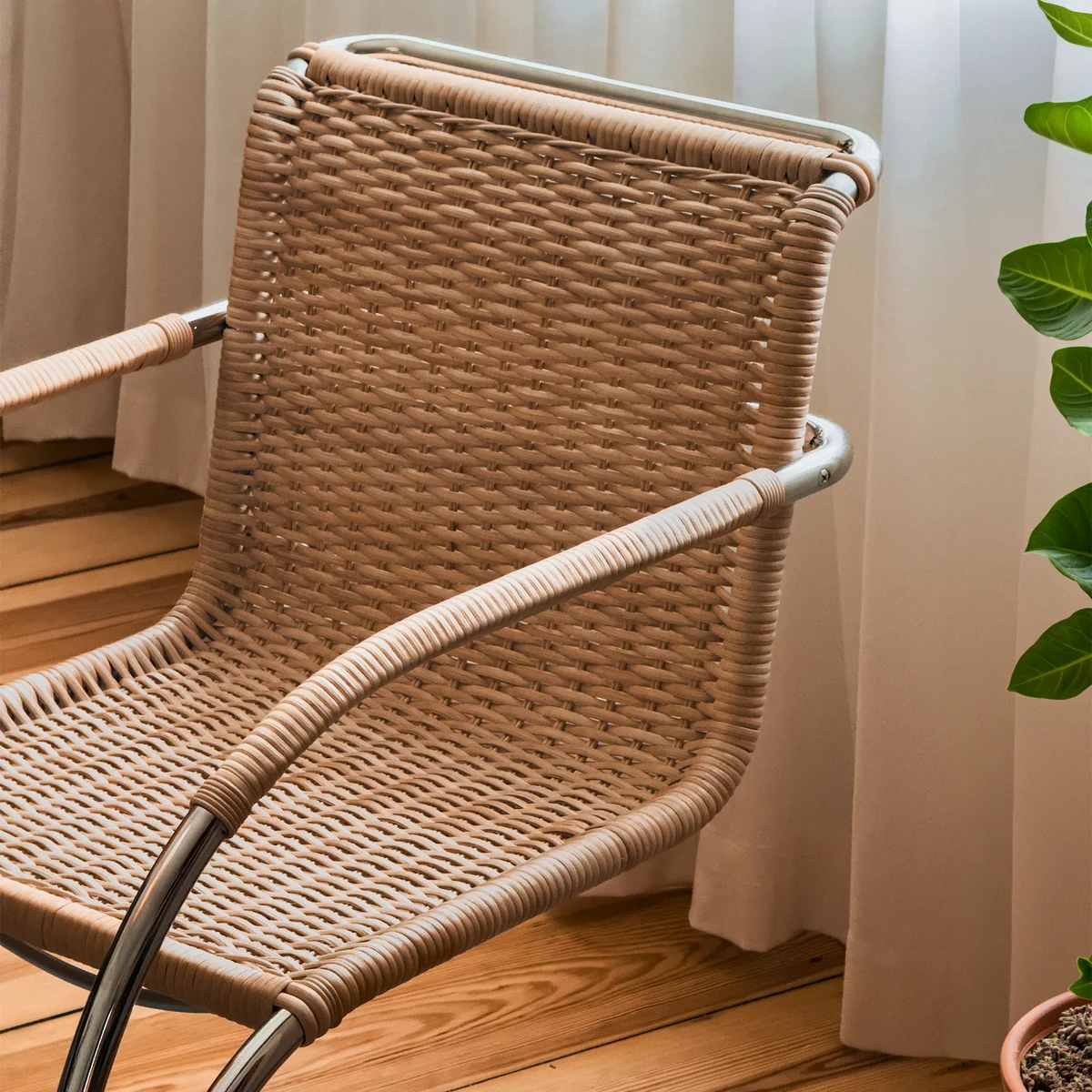 Thonet - S 533 RF Chaise avec accoudoirs, structure chromée / osier