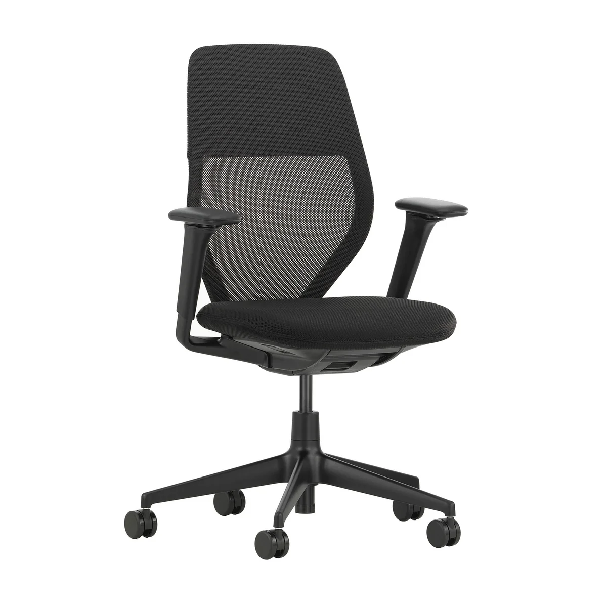 Vitra - ACX Light Chaise de bureau, Silk mesh nero / X Net nero, avec réglage de la profondeur d'assise, accoudoirs réglables en hauteur (roulettes pour sols durs)