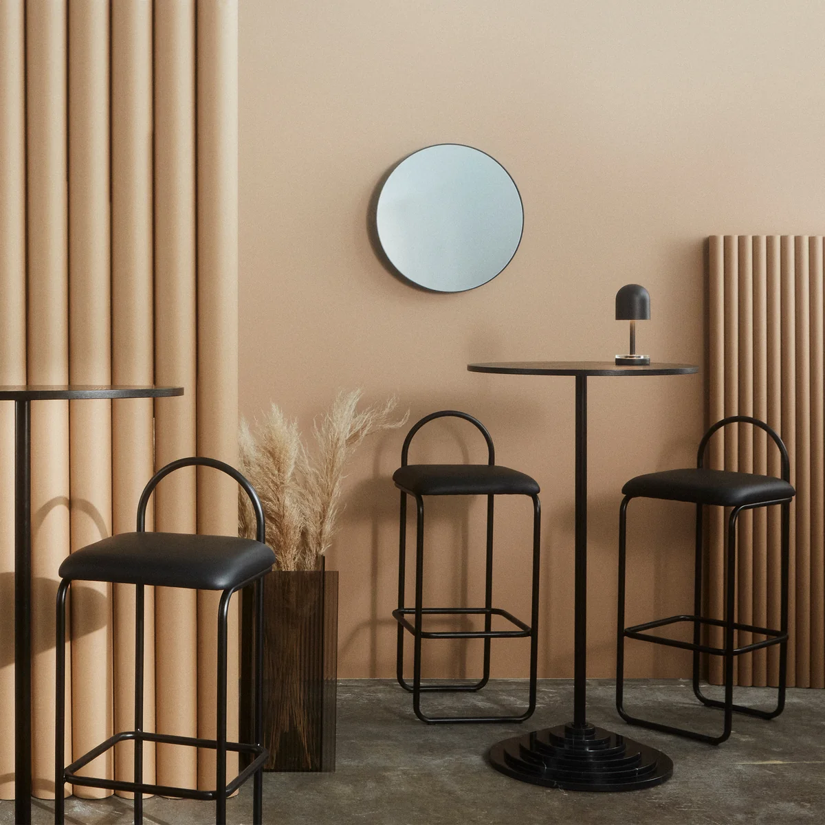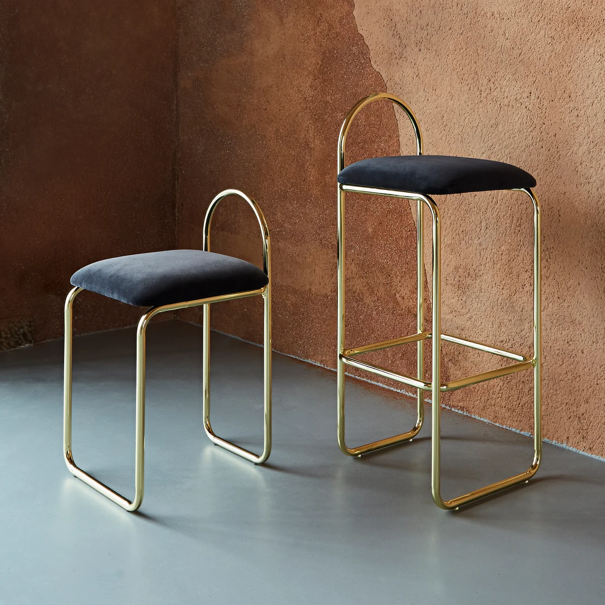 Le tabouret de bar Angui de AYTM est un complément élégant pour le bar à la maison ou la table de comptoir dans la cuisine. Son aspect est caractérisé par des lignes définies et des bords arrondis. L'assise rembourrée séduit par son revêtement en velours noble, tandis que le piètement en fer apporte une touche industrielle. Il en résulte une combinaison harmonieuse qui valorise chaque ambiance.