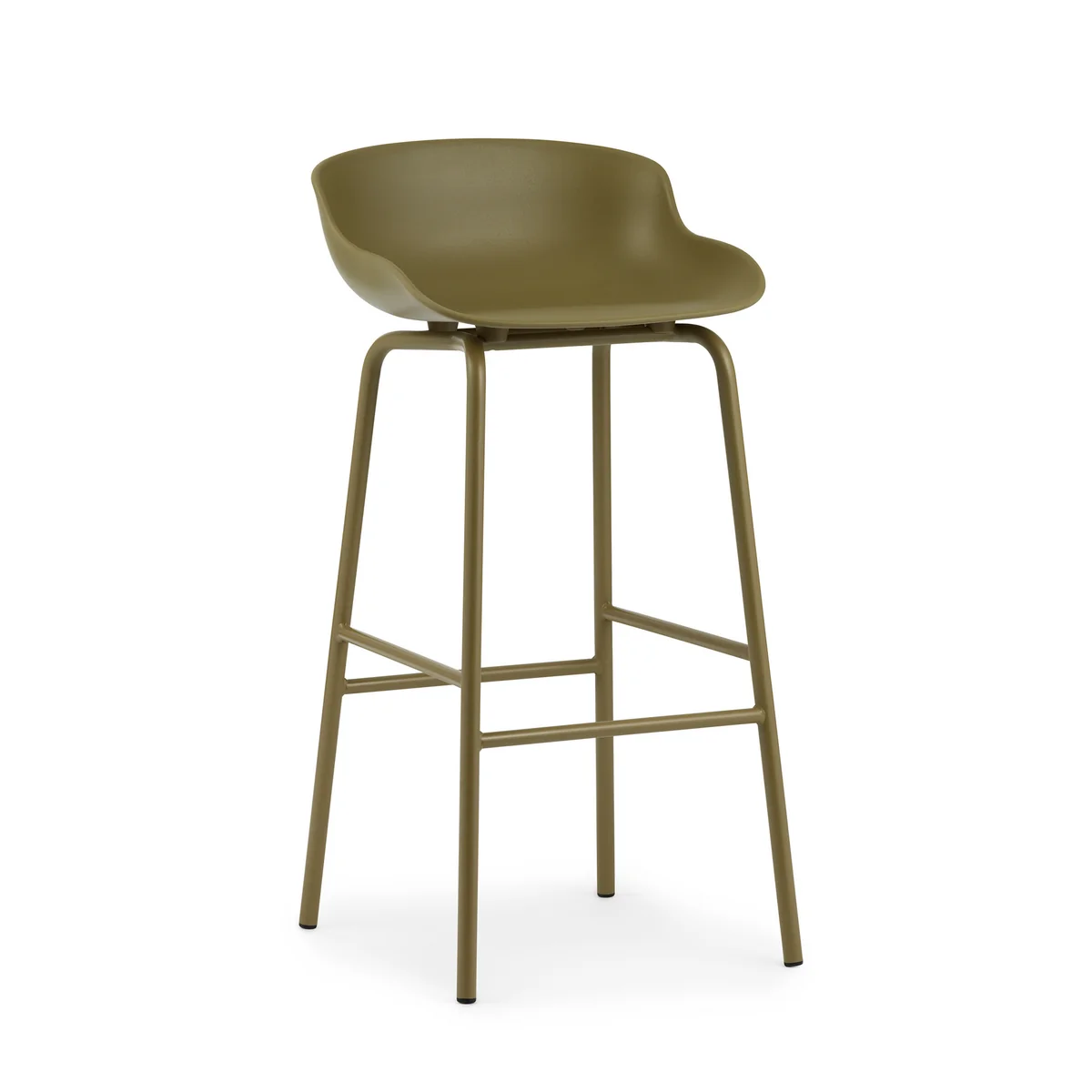 Le tabouret de bar se compose d'un cadre à quatre pieds en acier thermolaqué ou en chêne et d'une coque d'assise en polypropylène. Les deux parties sont laquées de la même couleur, ce qui donne au tabouret un aspect particulièrement calme et uniforme. Disponible en différentes couleurs et hauteurs, le tabouret de bar s'intègre parfaitement dans différentes ambiances, espaces publics et privés.
