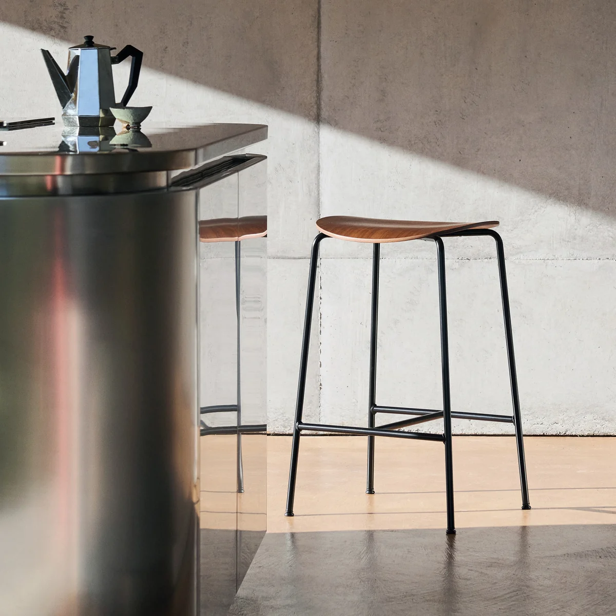 Le Pavilion tabouret de bar d'Anderssen & Voll pour & Tradition combine l'élégance scandinave et la stabilité fonctionnelle. Fabriqué à partir de tubes d'acier courbés et d'un placage moulé par compression, ce tabouret séduit par sa construction légère mais robuste. L'assise est recouverte d'un vernis à base d'eau, ce qui garantit un aspect naturel et une qualité durable. Avec sa silhouette élancée, le tabouret de bar s'intègre harmonieusement dans les cuisines, les bars et les espaces de travail modernes.