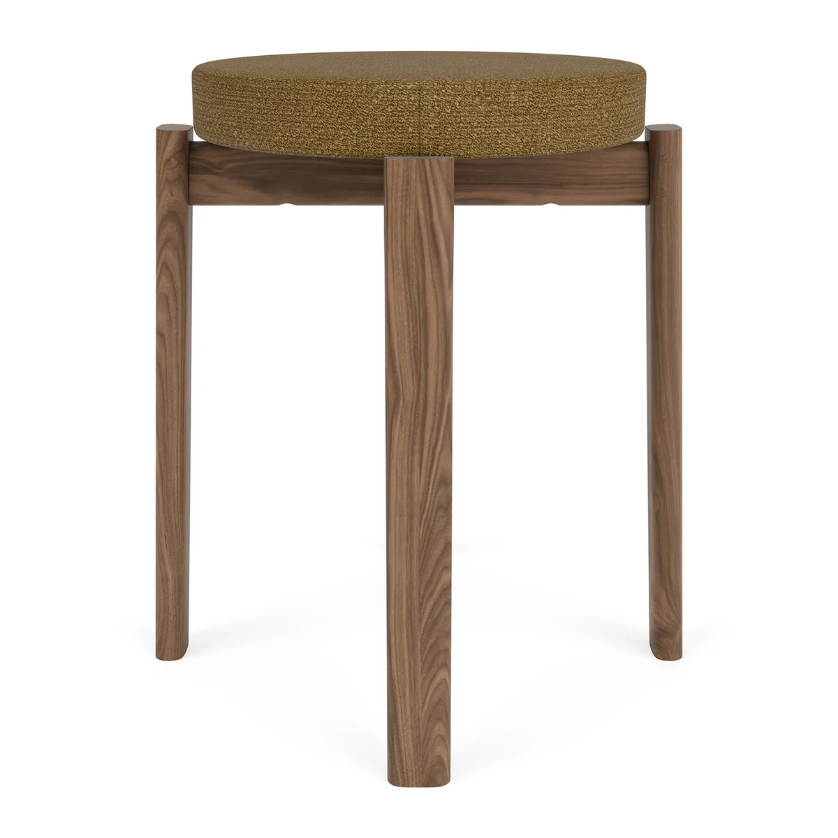 Audo fabrique le Passage tabouret en bois de chêne ou de noyer certifié FSC®. Le produit est disponible en différentes finitions et est livré en flatpack. Cela permet à l'utilisateur de s'interroger sur le design du tabouret. Selon la version, il est également disponible avec un coussin d'assise.