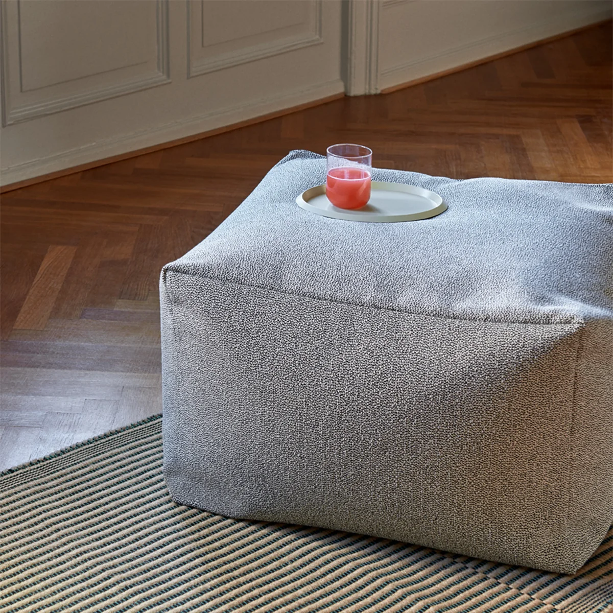 Le site Varer Pouf de HAY est un siège à la fois pratique et décoratif. Le pouf peut être utilisé de manière flexible comme pouf devant le canapé ou le fauteuil, comme tabouret pour les visiteurs spontanés ou comme étagère dans la chambre des enfants.