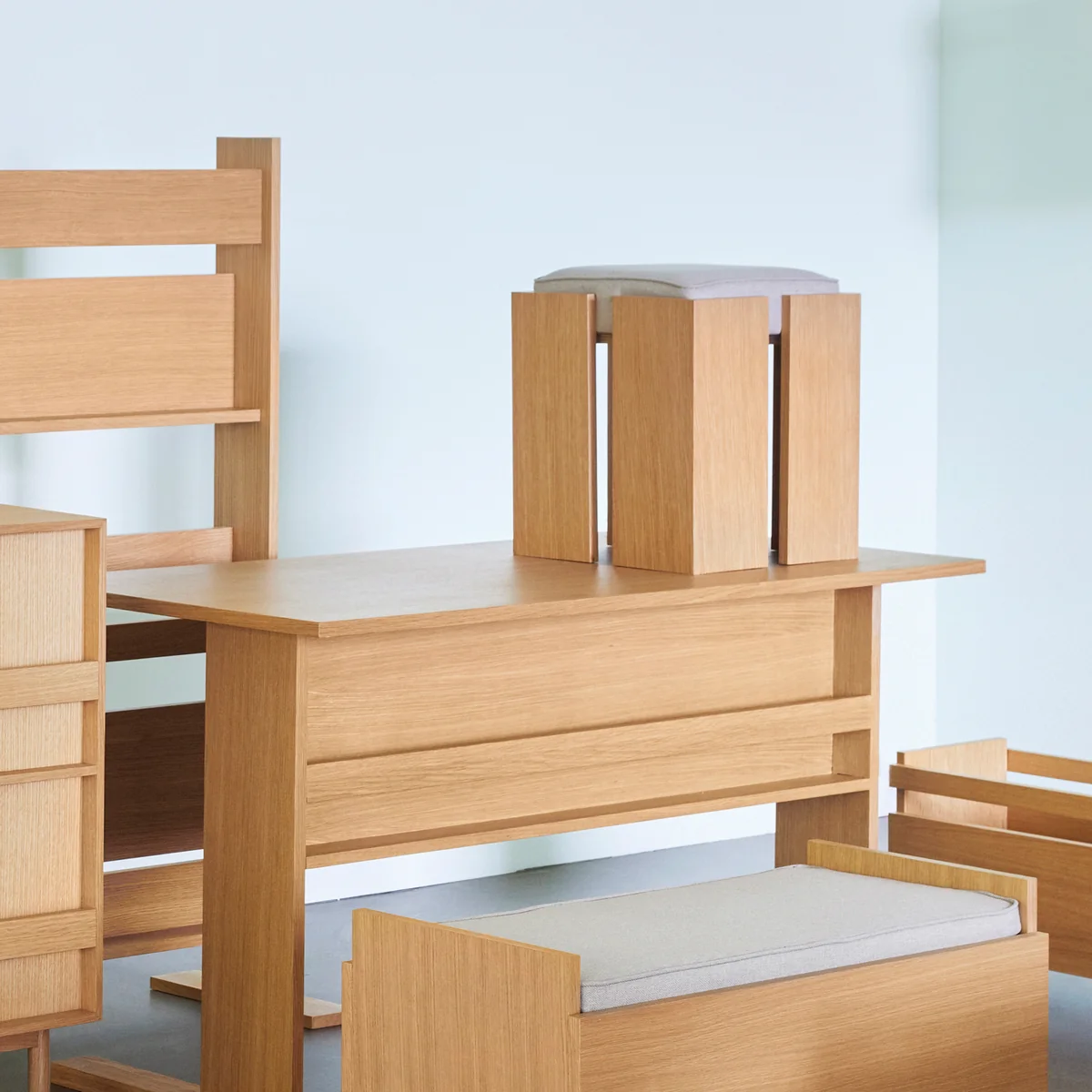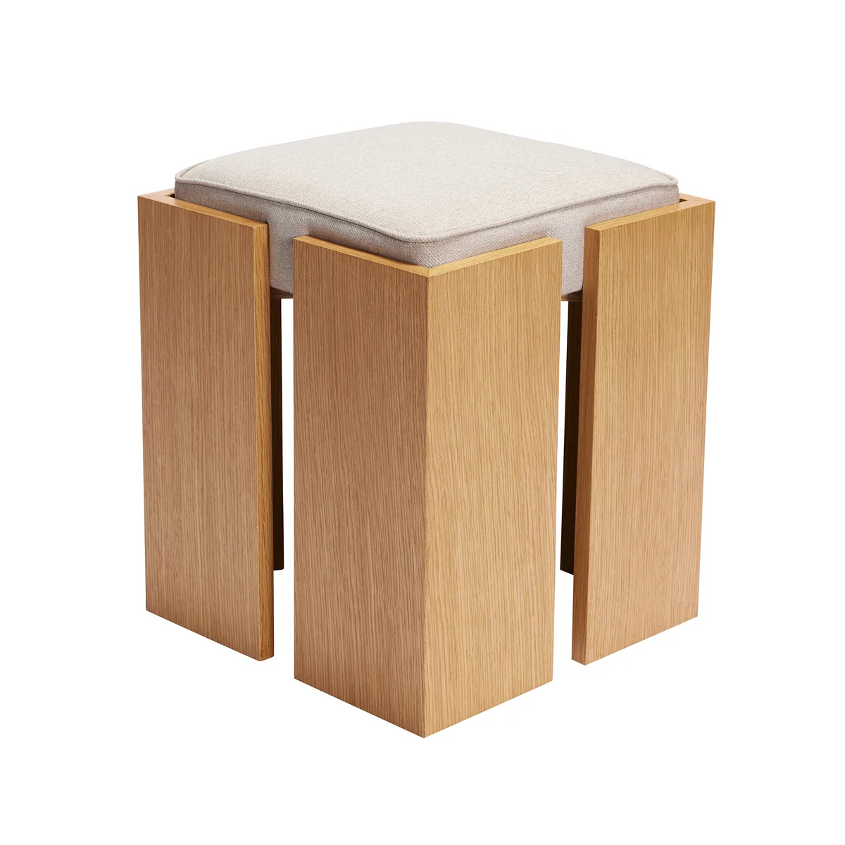 Le tabouret Forma convainc par sa forme marquante et anguleuse qui confère à chaque pièce un accent expressif. Fabriqué en bois certifié FSC® et combiné avec du placage de chêne et du polyester, le design allie une esthétique naturelle à des lignes modernes. Le tabouret donne l'impression d'être un objet sculptural, à la fois stable et adapté à la vie quotidienne. Avec son coussin d'assise fixe, il offre une assise confortable et s'intègre de manière flexible dans différents espaces de vie.