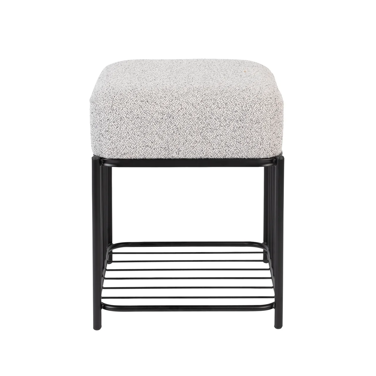 Le généreux coussin d'assise en mousse est recouvert d'un tissu fin, de sorte que le coussin garantit un grand confort. La petite tablette sous l'assise est ouverte et peut être utilisée comme espace de rangement compact. Grâce à son caractère minimaliste, le pouf peut être placé dans presque tous les intérieurs.