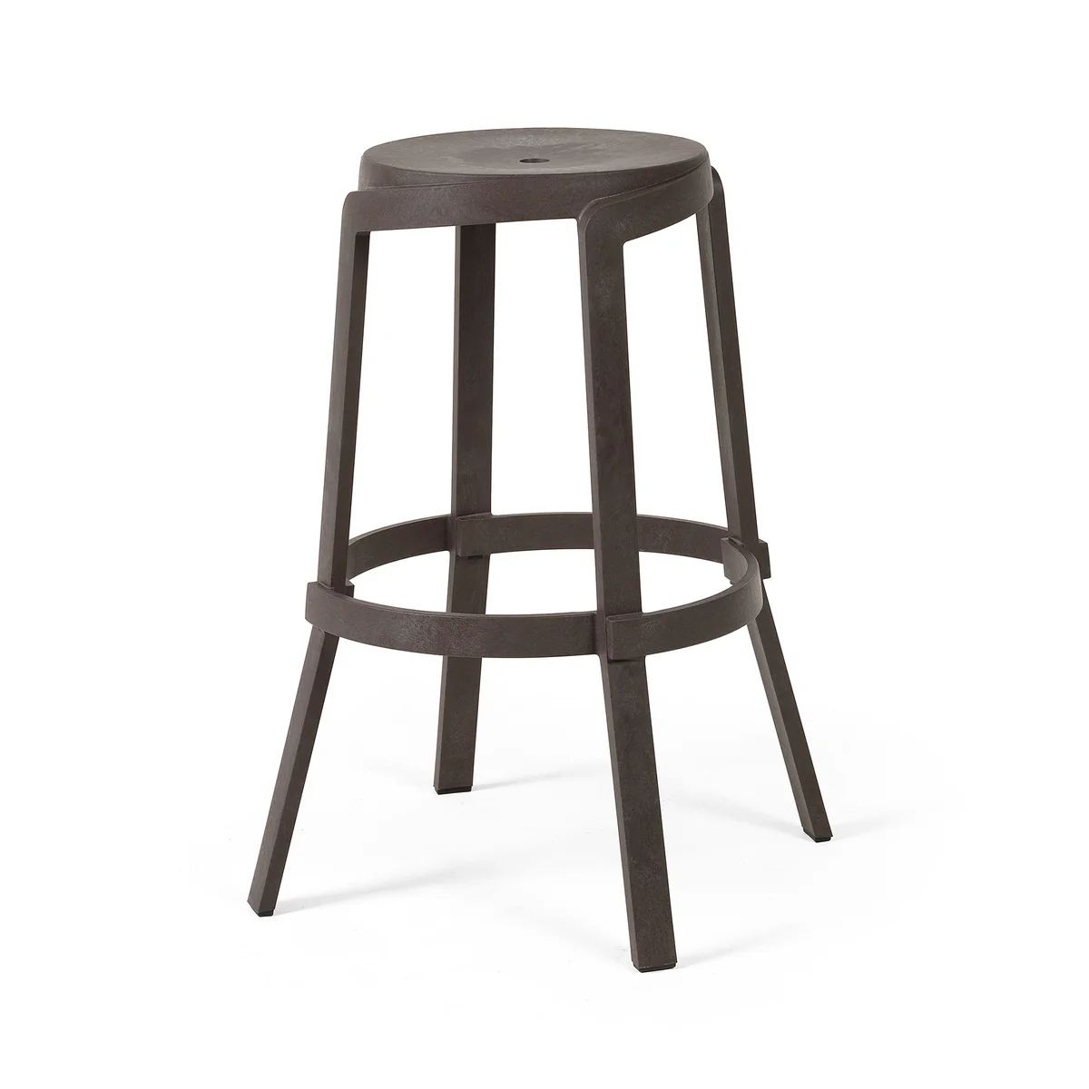 Les produits sont fabriqués Stack tabouret est fabriqué en polypropylène fibre de verre régénéré résistant aux UV avec un effet mat. Le tabouret présente différentes cannelures intentionnelles, unifiées par une seule couleur, Terra, et une texture mate et grossière à l'effet vintage.