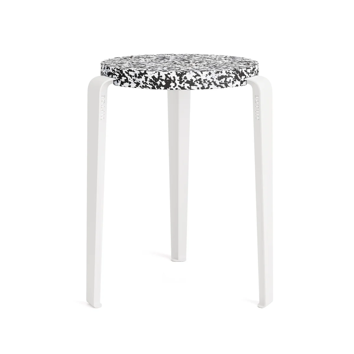 L'assise du Lou tabouret est en chêne solide, tandis que les pieds sont en acier revêtu par poudre. Le tabouret est également disponible dans une variante en plastique recyclé.