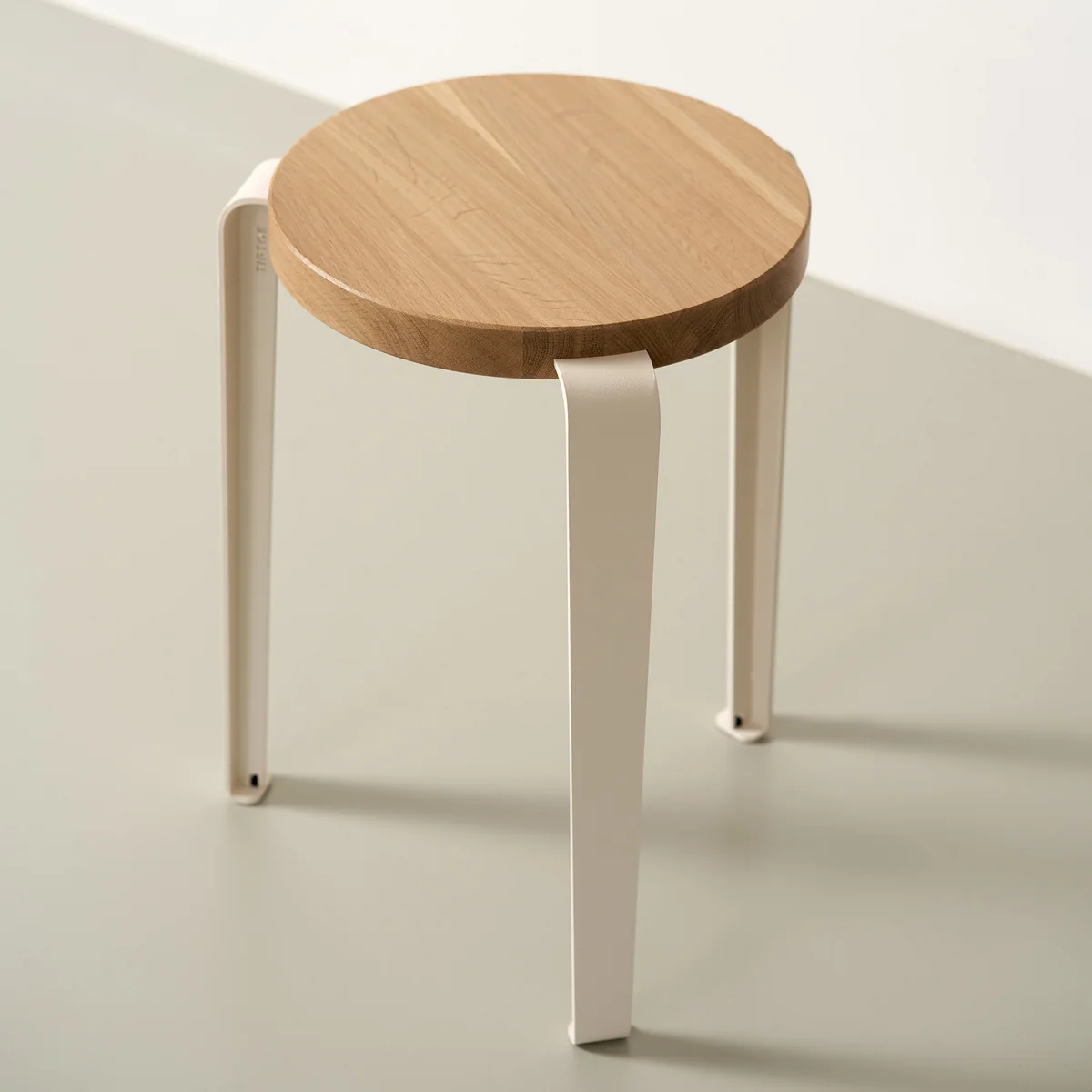 L'assise du Lou tabouret est en chêne solide, tandis que les pieds sont en acier revêtu par poudre. Le tabouret est également disponible dans une variante en plastique recyclé.