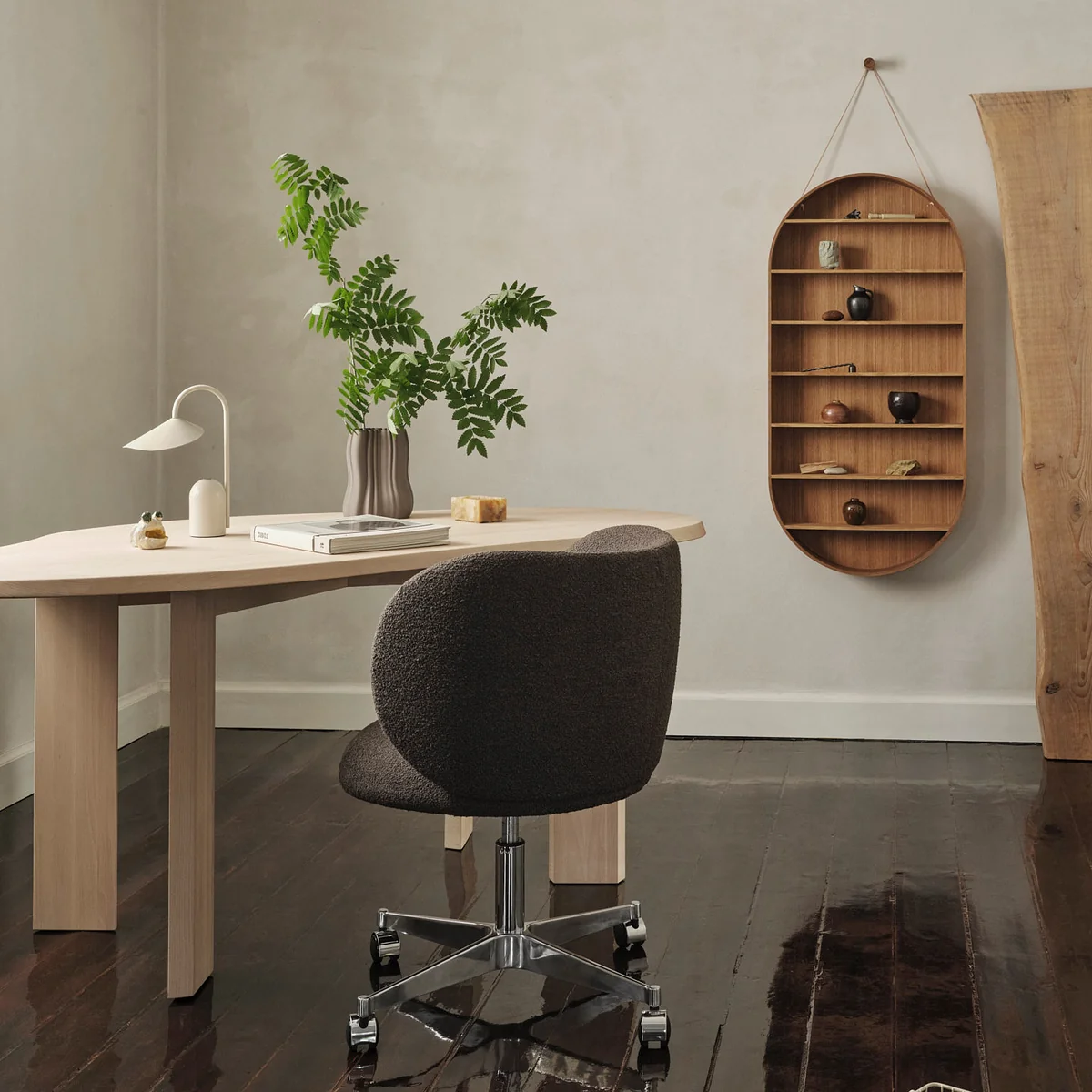 L'étagère murale Oval Dorm de Ferm Living est un meuble élégant et polyvalent qui est à la fois fonctionnel et décoratif. Fabriquée en chêne de qualité supérieure, disponible en version huilée ou fumée, elle apporte une chaleur naturelle et une esthétique intemporelle dans chaque pièce. Avec sa forme ovale et son design minimaliste, l'étagère s'intègre harmonieusement dans différents styles d'aménagement et offre une surface de présentation élégante pour les livres, les plantes ou les petits objets de décoration. Cette étagère murale n'est pas seulement pratique, elle attire également l'attention sur chaque mur.