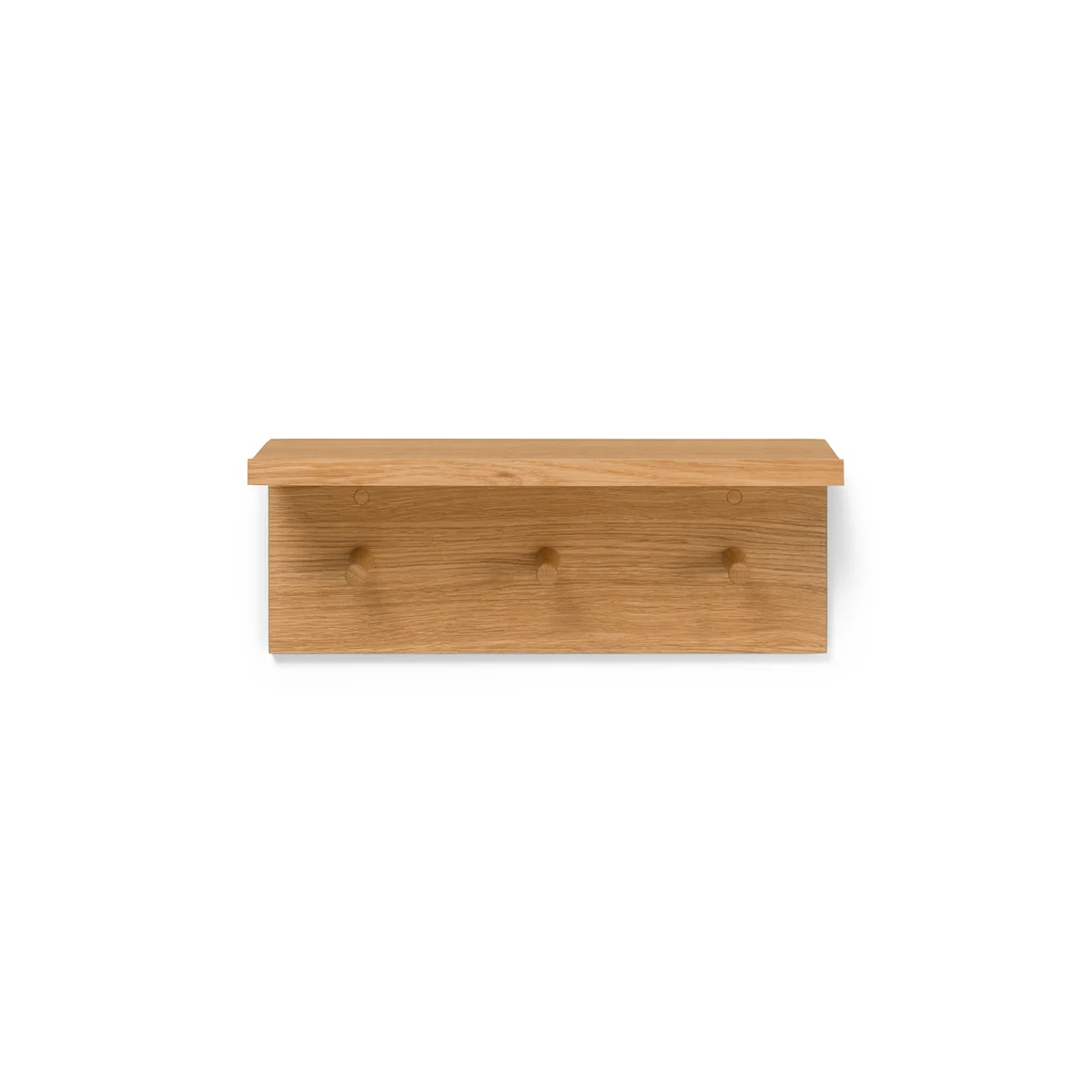 La table Place étagère murale du label Ferm Living est la preuve parfaite que moins c'est plus ! L'étagère minimaliste s'adapte parfaitement à son environnement. Elle est fabriquée en placage de chêne huilé avec une âme en MDF. Les différents capuchons en bois sont amovibles si nécessaire. Le montage de l'étagère Place de l'étagère est très simple. Selon les préférences, l'étagère murale peut être utilisée pour suspendre des torchons, des ustensiles de cuisine ou pour ranger des chapeaux, des casquettes, des vestes et autres.