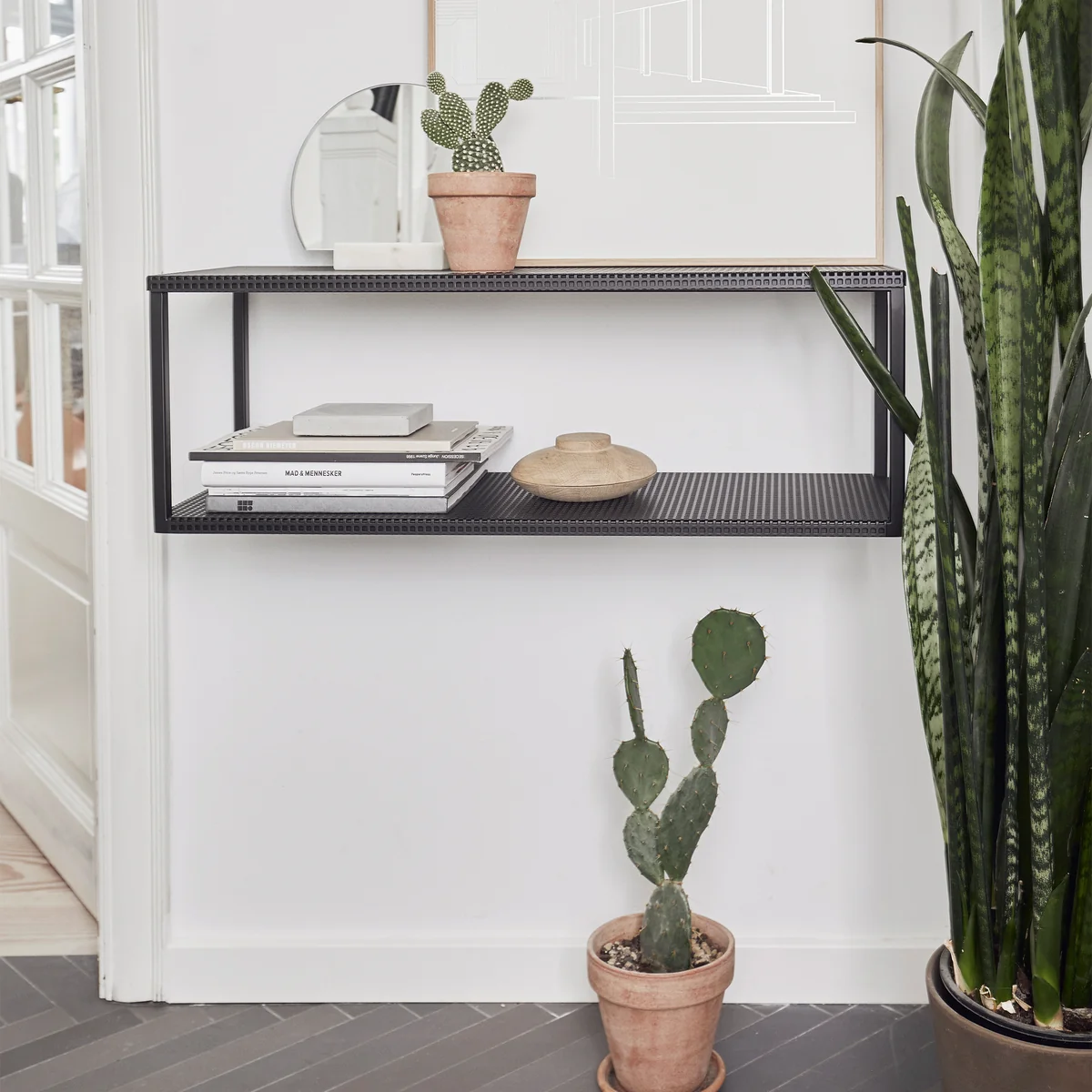 L'étagère murale Grid de Kristina Dam Studio est une étagère simple pour le mur en acier de haute qualité. Il offre un moyen élégant de stocker des chaussures, des livres et des appareils de cuisine. L'étagère peut être utilisée comme étagère à chaussures dans l'entrée et le couloir, est idéale pour les épices ou la vaisselle dans la cuisine et fait un bon porte-serviettes dans la salle de bain. En tant qu'étagère pour livres, vases et autres décorations, l'étagère devient un accroche-regard intemporel sur chaque mur.