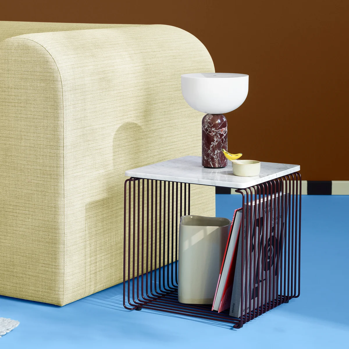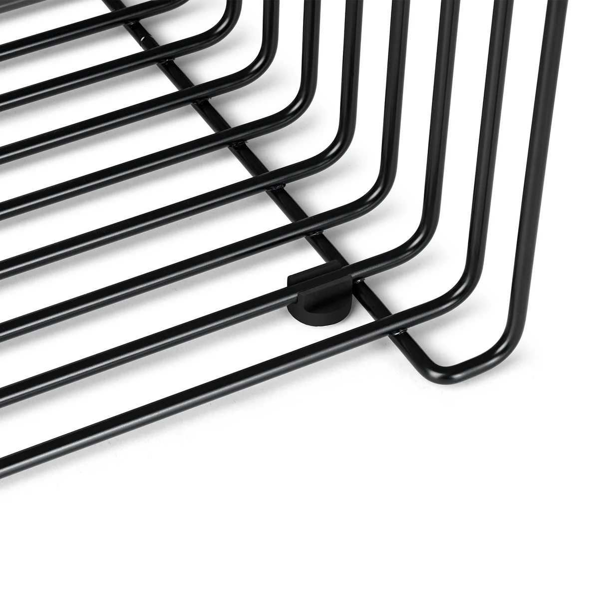 L'étagère se compose d'une structure en fil métallique disponible en deux profondeurs. Différents accessoires tels que des étagères ou des plaques de recouvrement complètent Wire de manière optimale et font de la construction en fil métallique un objet pratique et intemporel dans l'espace de vie.