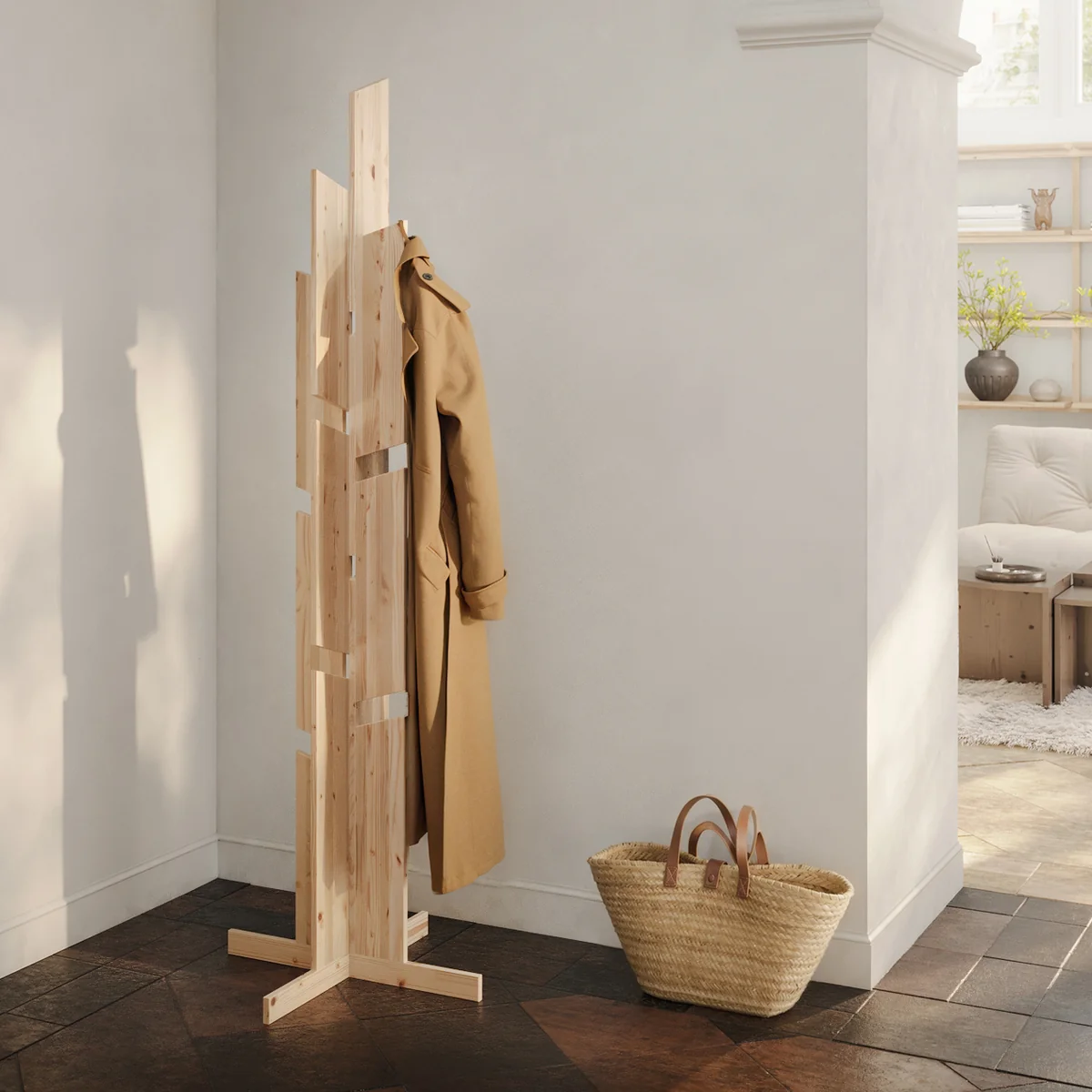 Le portemanteau Keeper de Karup Design Keeper est plus qu'un simple support pratique pour les vestes et les sacs - c'est une déclaration de design. Conçu par le designer suisse Fabien Roy, Keeper séduit par sa structure claire et sculpturale en bois de pin brut certifié FSC®. Les planches de bois empilées donnent l'impression d'être un objet d'art tout en apportant une chaleur naturelle dans chaque pièce.