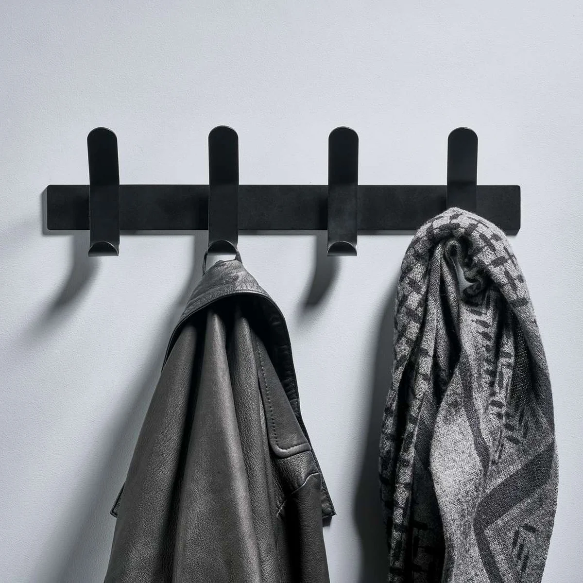 Le portemanteau est également très esthétique et impressionne surtout par son design simple sans vis apparentes. Ceux-ci sont cachés derrière les crochets, qui sont simplement fixés après que la bande ait été attachée. Le portemanteau conçu par VE2 est en acier peint par poudrage en différentes couleurs.