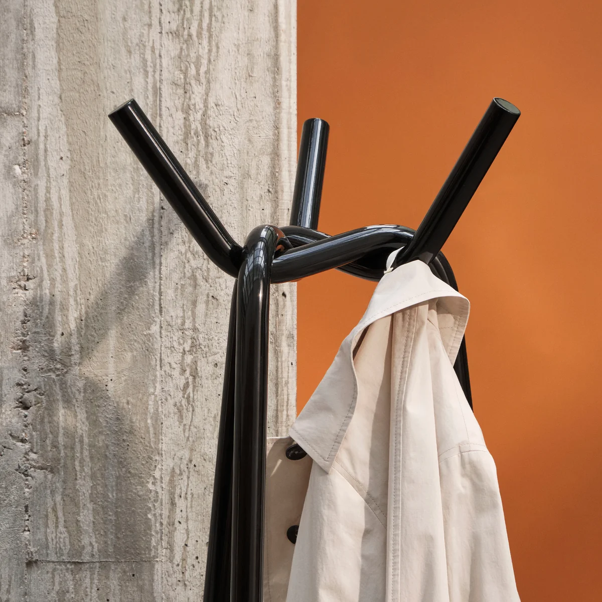 Le site Knit porte-manteau de HAY a été conçu par le designer japonais Jin Kuramoto exclusivement pour HAY conçu. Son corps constitue un point fort particulier : un corps tridimensionnel qui noue trois tubes d'acier ensemble et forme ainsi une monture robuste et en même temps iconique. La finition haute brillance donne au porte-manteau un effet brillant qui se démarque du reste du mobilier dans n'importe quel couloir, chambre ou espace public. Inspiré par l'approvisionnement en matériaux et le toucher des surfaces, Jin Kuramoto crée les dessins initiaux à la main. Le site Knit Le porte-manteau est fabriqué en acier revêtu de poudre et est disponible en différentes versions.