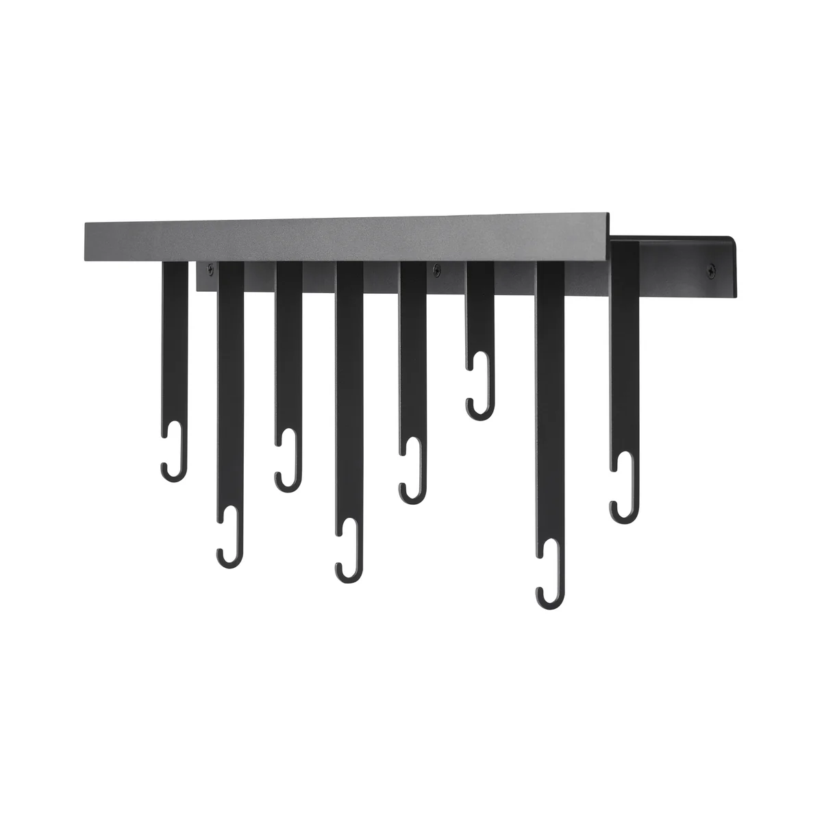 Le portemanteau mural Atelier de Design House Stockholm est un élément mural au design graphique en fer revêtu par poudre. Ses huit crochets permettent de suspendre vestes, manteaux, écharpes et sacs à portée de main. La fixation murale étroite possède en outre une étagère sur le dessus, sur laquelle les clés, le téléphone portable et le porte-monnaie trouvent leur place.