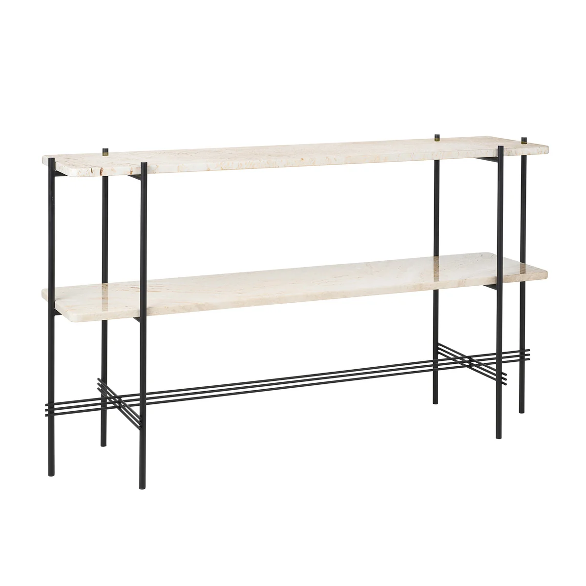 Gubi - Travertine Console, 2 étagères, noir / blanc