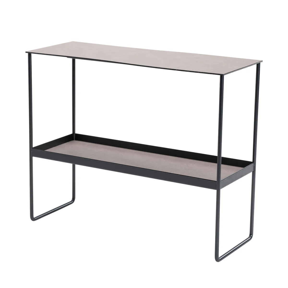 La table console de Lind DNA est une étagère minimaliste et élégante avec deux niveaux pour l'entrée et la zone de vie. Le cadre de la console est en acier thermolaqué. Sur deux niveaux, livres, dossiers, vaisselle, vases et autres objets décoratifs trouvent une belle place. Les étagères sont en aluminium et sont recouvertes de cuir recyclé.