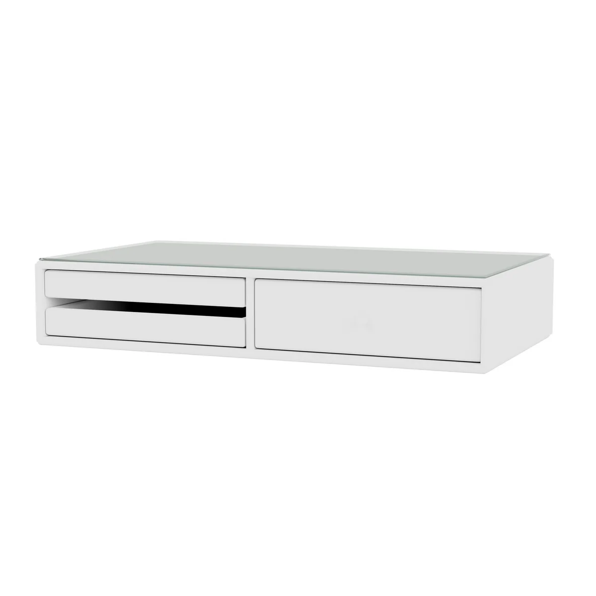 Avec sa profondeur de 38 cm, le Makeup est non seulement un gain de place, mais est également certifié avec le label écologique de l'UE. Les articles cosmétiques peuvent être rangés dans un tiroir et sur deux plateaux.
