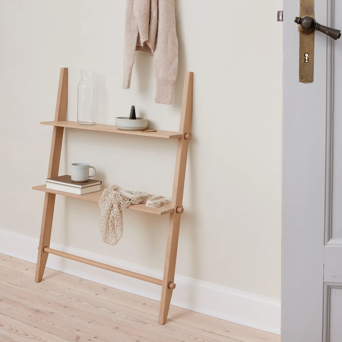 La Roon & Rahn Repo table console de We Do Wood est l'alternative rustique et moderne aux tables consoles traditionnelles. Elle dispose d'un aspect d'étagère en échelle avec deux plateaux qui peuvent être décorés selon les souhaits de chacun. Elles peuvent être utilisées comme étagères fonctionnelles et porter des livres, des boîtes ou des bols, mais aussi comme surface de présentation pour les plantes en pot préférées. L'étagère Repo laisse toutes les portes ouvertes et offre l'opportunité de laisser ses propres influences créatives participer à l'aménagement.