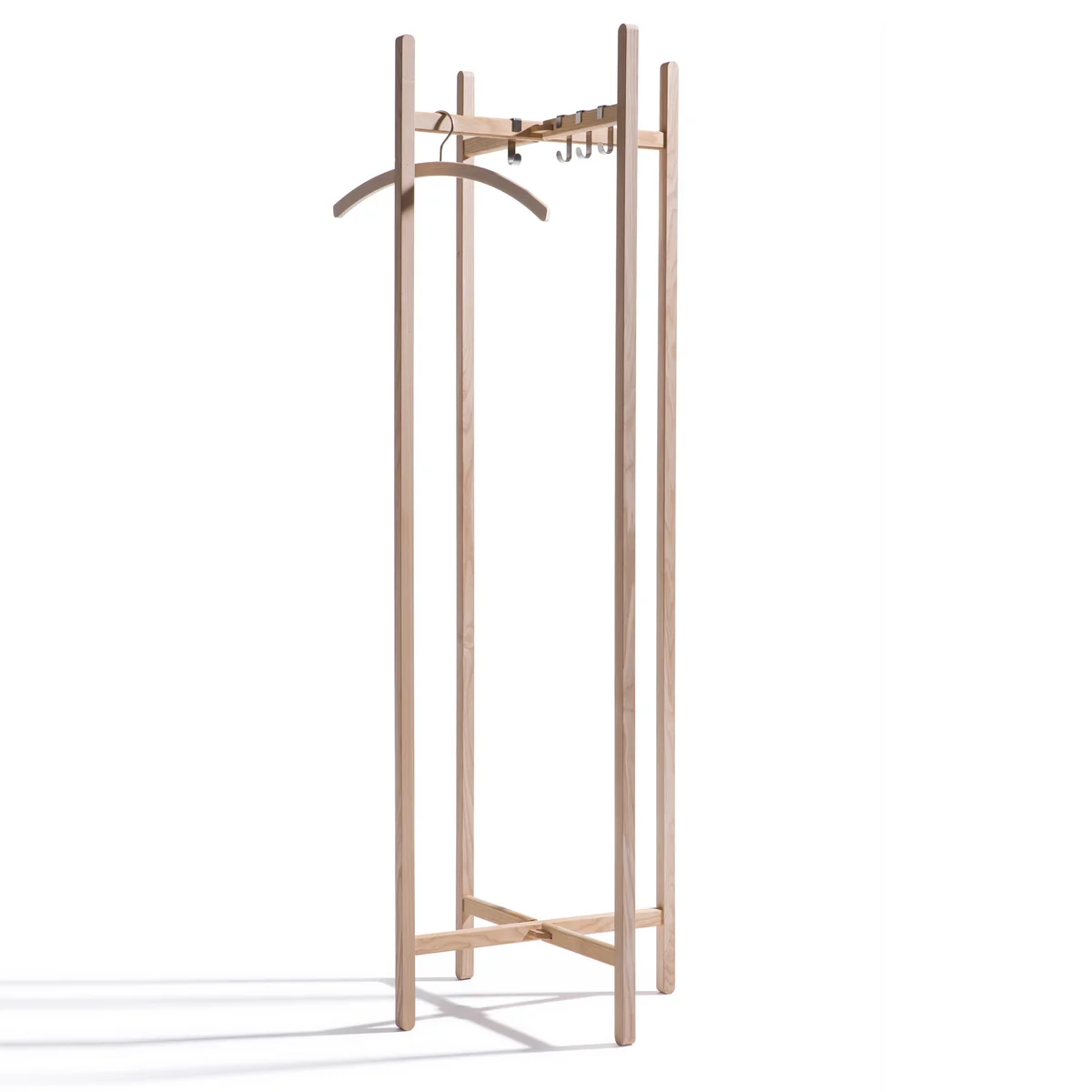 Et tout ça, sans design tape-à-l'œil : le portemanteau New Hang On de side by side reste agréablement discret. Des cintres peuvent tout à fait être suspendus aux tringles. side by side propose en plus un lot de crochets pour le portemanteau, de sorte que chaque vêtement trouve sa place sur ce New Hang On fabriqué en bois de chêne massif.