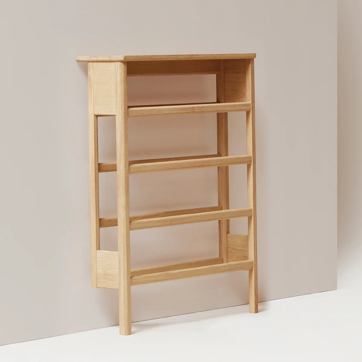 Le A Line étagère à chaussures de Form & Refine combine une étagère à chaussures pratique avec les avantages d'un rangement. Que ce soit dans le couloir, l'entrée, le dressing ou la pièce à vivre, les étagères permettent de ranger jusqu'à 12 paires de chaussures, l'entretoise supérieure servant de rangement pour les petits objets du quotidien. Grâce à son design ingénieux, l'étagère peut être confortablement appuyée contre le mur, voire fixée si nécessaire.