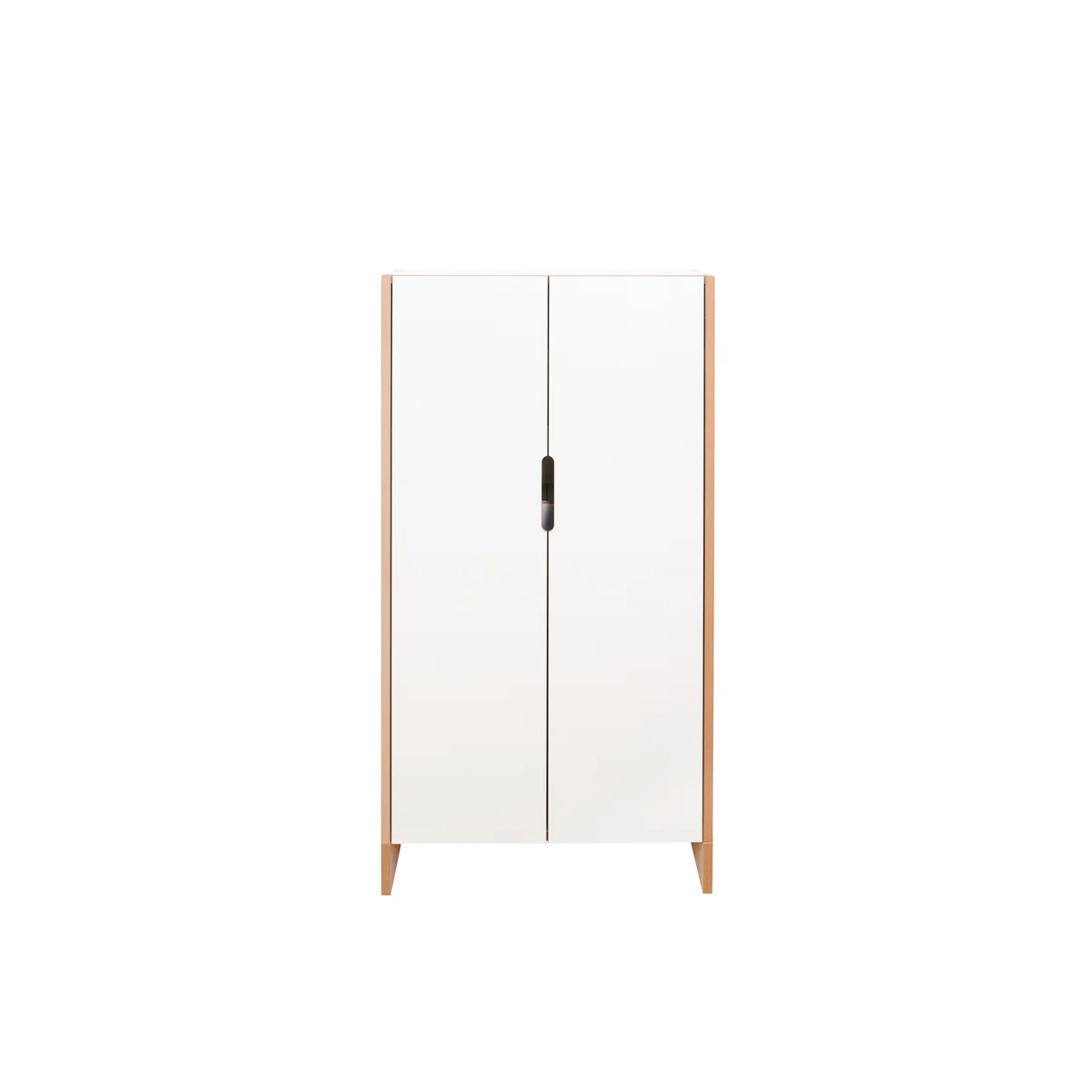 L'armoire est en MDF revêtu de blanc. 5 étagères sont incluses dans la livraison. Au total, jusqu'à 10 étagères peuvent être insérées dans le meuble à chaussures Tojo , qu'il soit plat ou incliné.