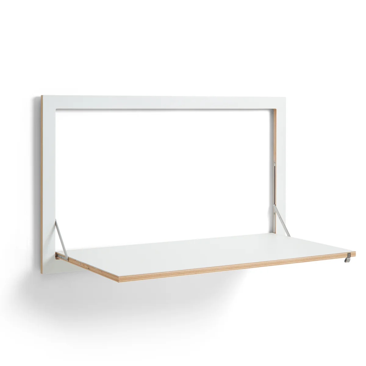 Fläpps Le secrétaire/in de Ambivalenz est un secrétaire mural fonctionnel et peu encombrant qui se déplie. Monté à n'importe quelle hauteur et donc utilisable comme place assise ou debout, le secrétaire mural séduit, une fois replié, par sa profondeur extrêmement faible de seulement 3 cm. Déplié, le secrétaire devient un véritable talent multifonctionnel. Fläpps Le secrétaire peut être utilisé comme bureau, table à manger, table de bricolage et bien plus encore.