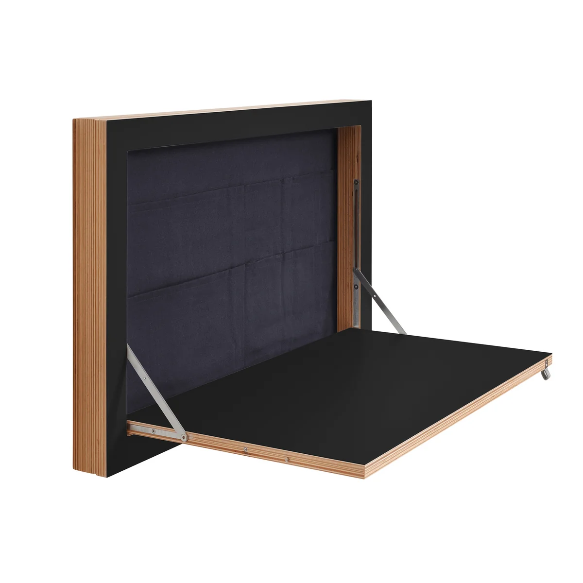 Le Fläpps secrétaire d'État de Ambivalenz est un secrétaire mural pliable. Une fois replié, le secrétaire séduit par sa profondeur totale extrêmement fine, mais ce n'est qu'une fois déplié qu'il déploie tout son potentiel.