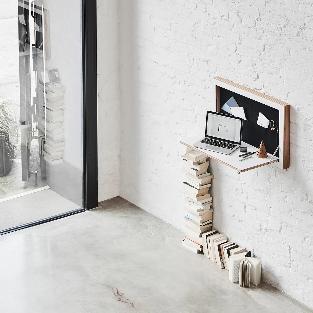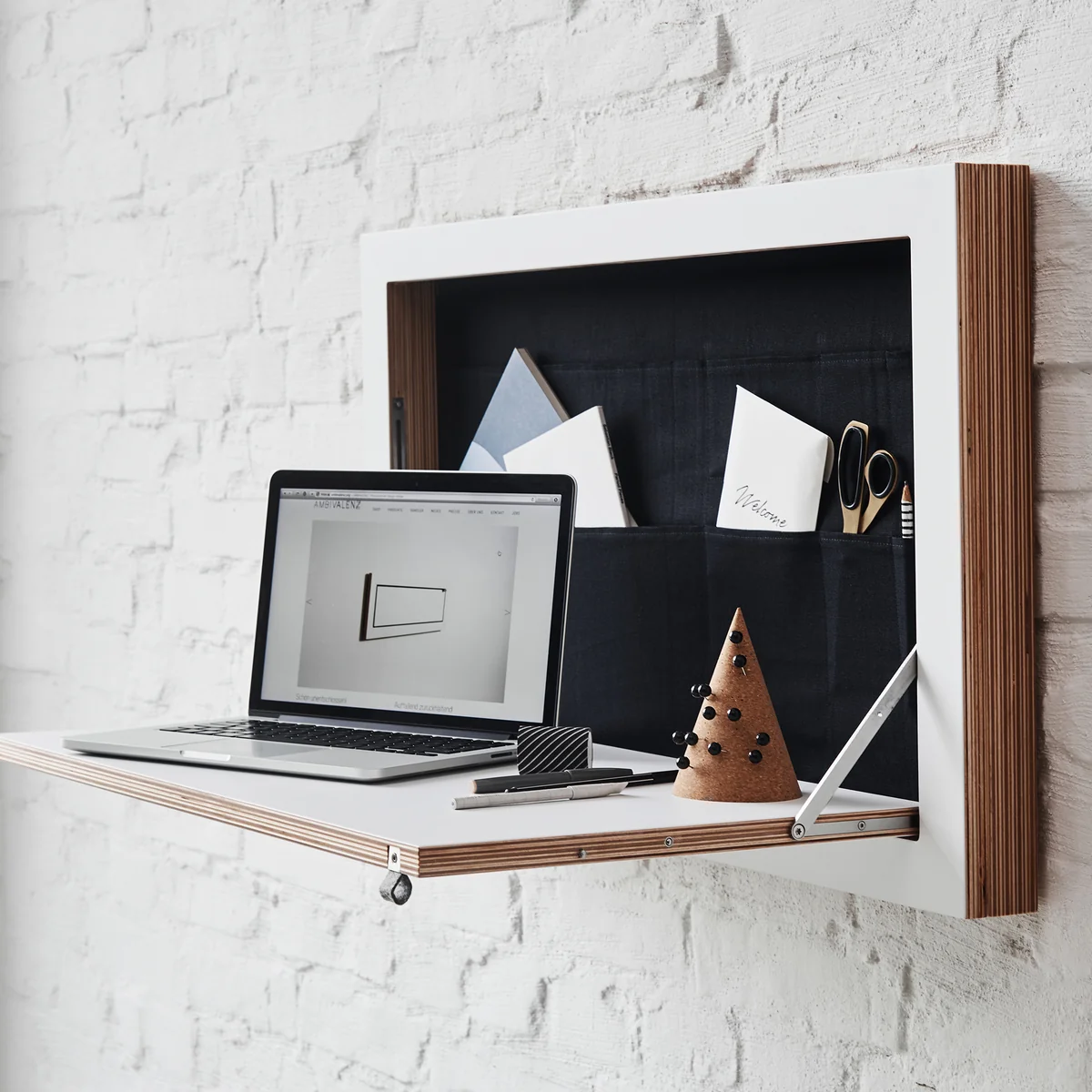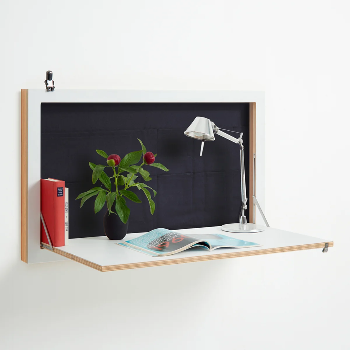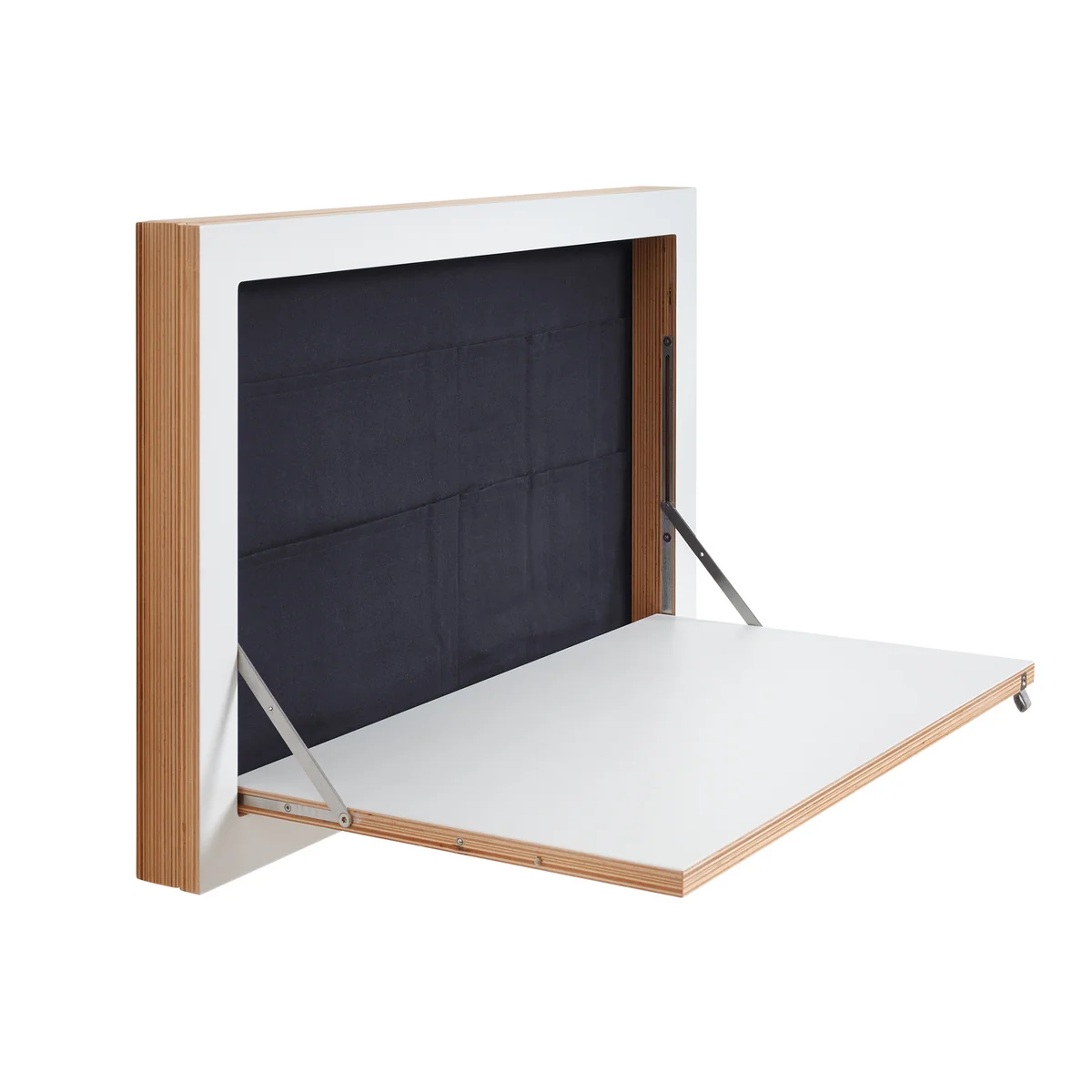 Le Fläpps secrétaire d'État de Ambivalenz est un secrétaire mural pliable. Une fois replié, le secrétaire séduit par sa profondeur totale extrêmement fine, mais ce n'est qu'une fois déplié qu'il déploie tout son potentiel.