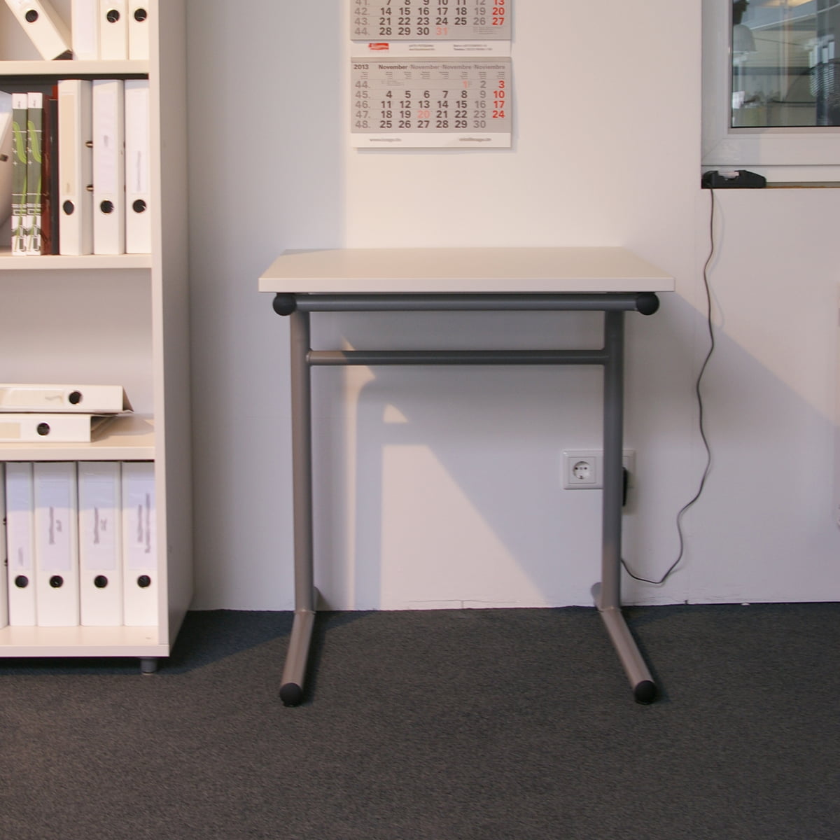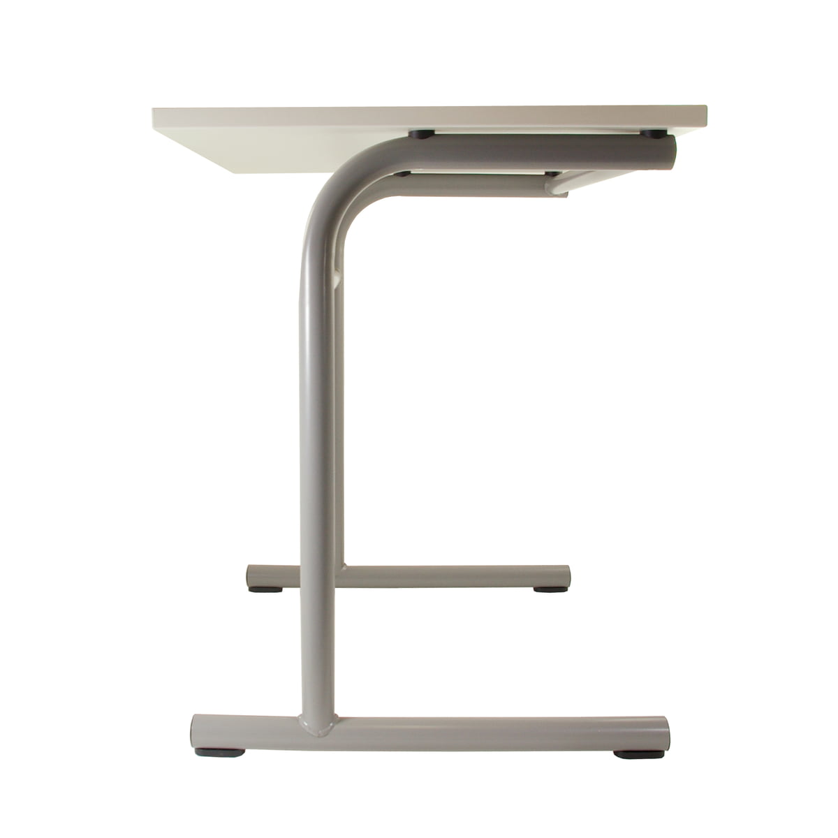 L'aspect extérieur de la table Pro School fait penser à une table d'école classique. La table constitue un complément parfait aux chaises Pro avec cadre en C et séduit par ses finitions de qualité. Le châssis en forme de T de couleur granite est en acier tubulaire de précision rond étiré (Ø-extérieur 30mm) avec un renforcement latéral en acier tubulaire rond soudé solidement (Ø-extérieur 28 mm). Les plateaux sont fabriqués en panneaux de particules mélaminés solides d'une épaisseur de 19 mm (Type P2 selon la norme DIN EN 312:2003-11). Le panneau doté d'un revêtement en mélaminé des deux côtés, avec une texture perlée matte, est disponible en trois couleurs (blanc neige, granite et gris clair). La bordure de sécurité ABS d'une épaisseur de 3 mm est arrondie sur toute sa longueur avec un rayon de 2 mm et sa couleur est assortie au ton du panneau.