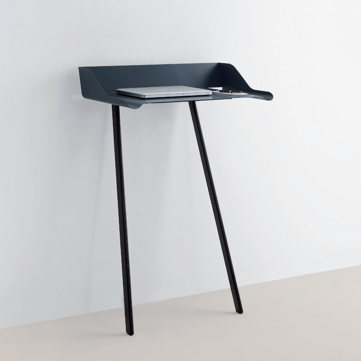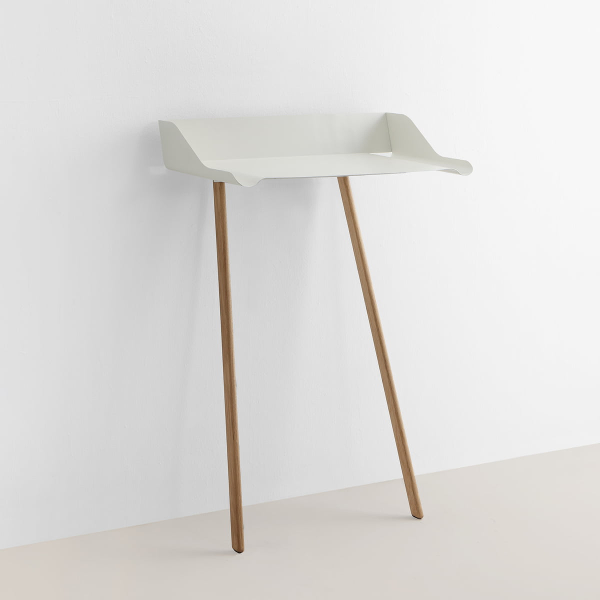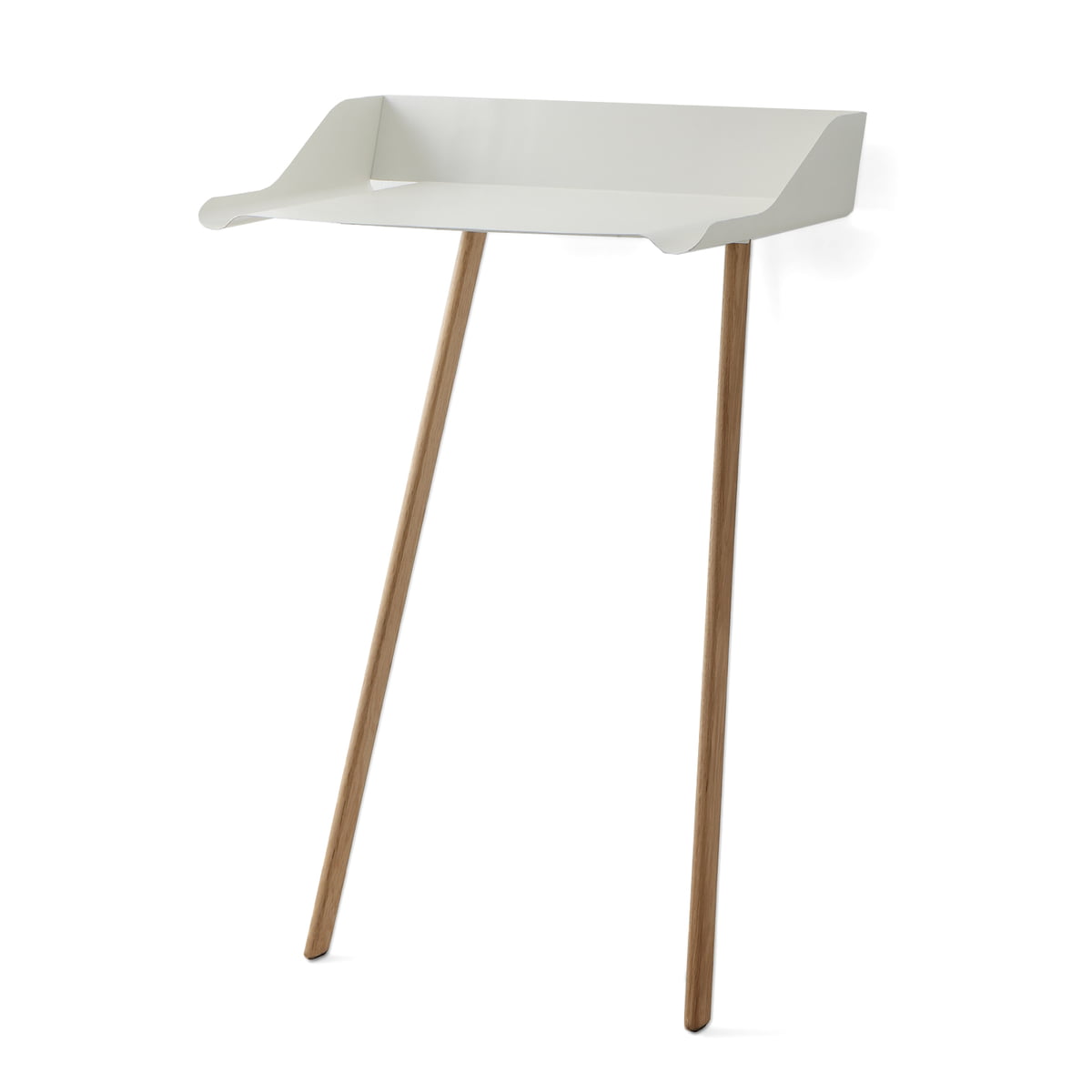 Storch est une table de bureau pratique qui s'adosse en parfait équilibre contre le mur. Idéal pour travailler de temps en temps, pour déposer son ordinateur portable ou pour remplir des formulaires à la réception. Les deux rainures latérales font d'une part office de support et sont d'autre part parfaites pour conserver des accessoires d'écriture. L'ouverture à l'arrière permet de faire élégamment passer le câble de l'ordinateur portable ou de la lampe à poser jusqu'à la prise de courant.