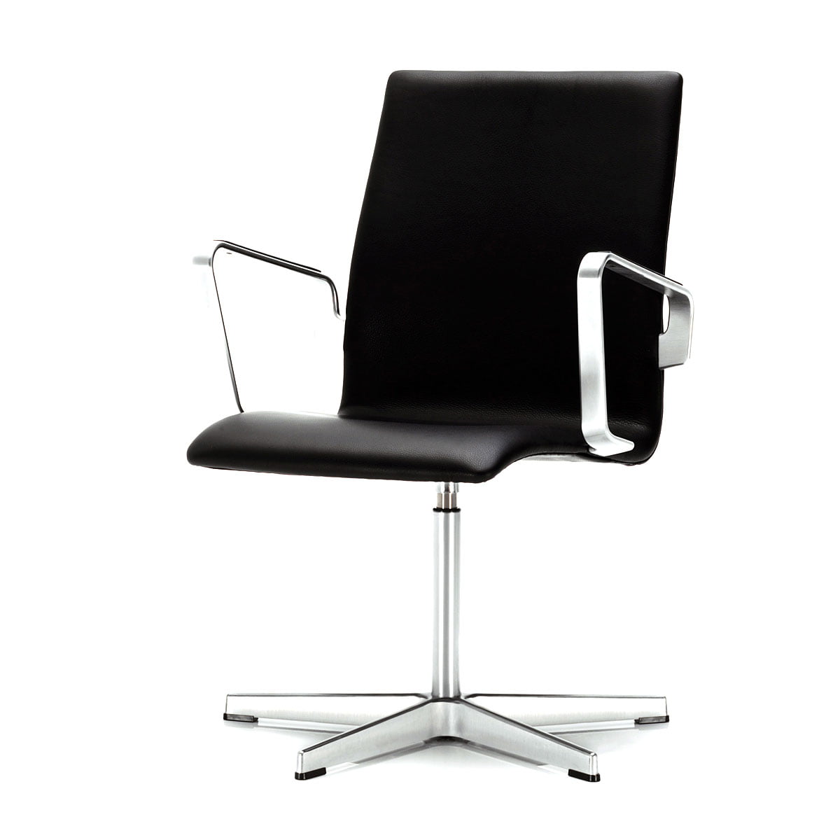 Fritz Hansen - Oxford, cuir noir, dossier bas, accoudoirs, pivotante
