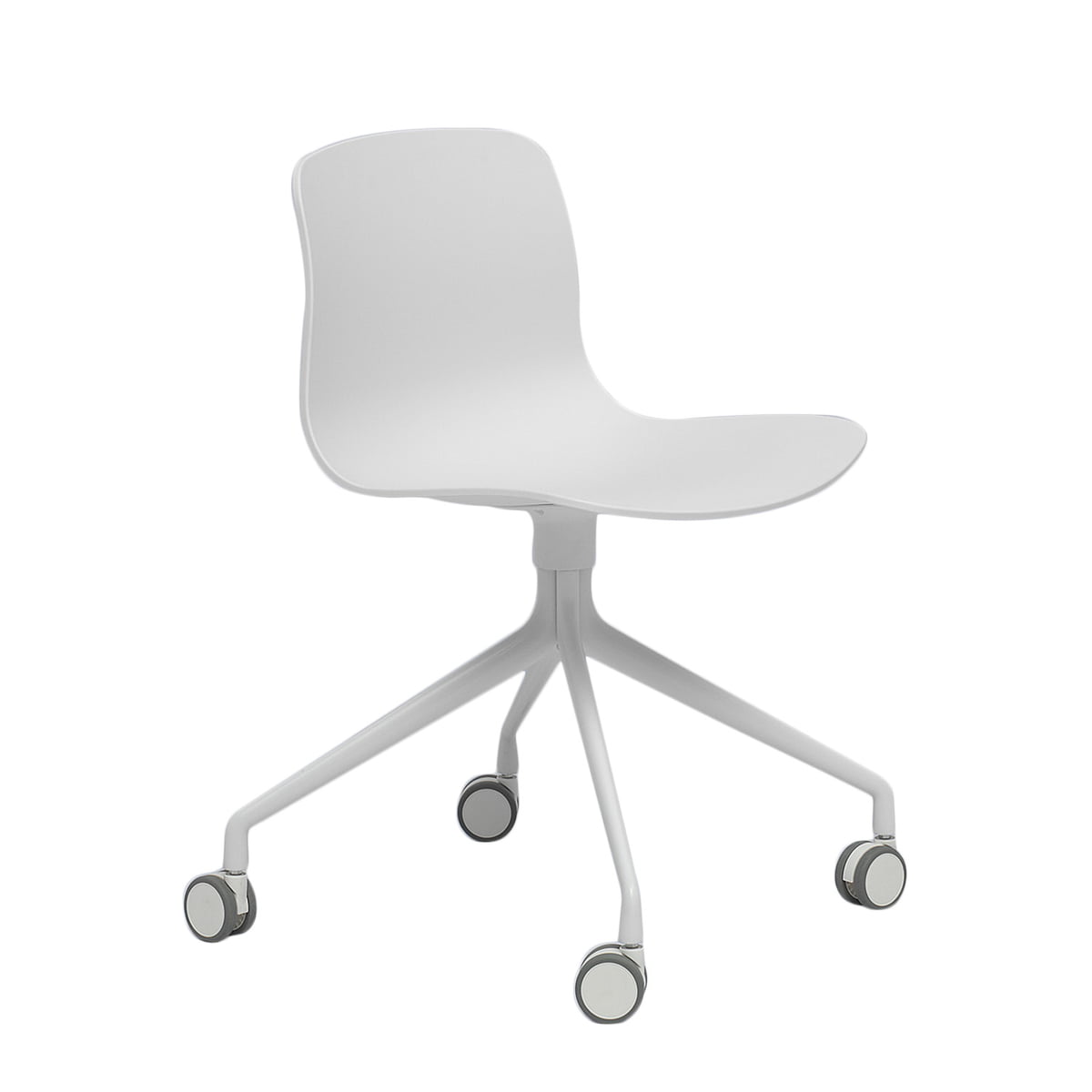 L’AAC 14 a une coque de siège sans rembourrage et sans accoudoir. Elle est de polypropylène, teinté dans la masse (pouf disponible en option). Le piètement à quatre pieds est pivotante et disponible en aluminium poli ou avec un revêtement par poudre. Elle dispose des roues douces, qui sont idéales pour tous les sols. C’est la raison pour laquelle l’ACC – qui est également disponible avec un cadre laqué - est surtout idéale comme chaise de bureau.