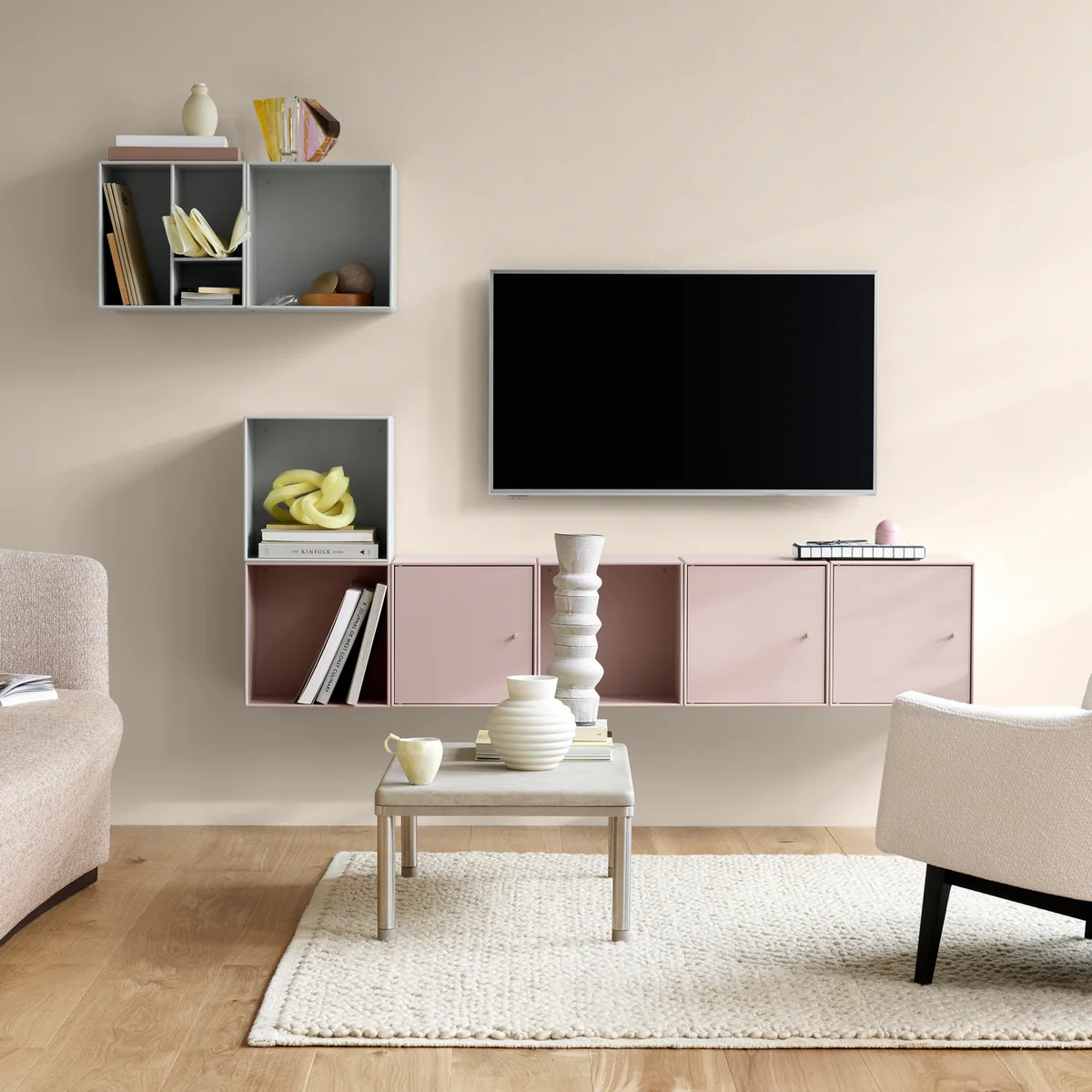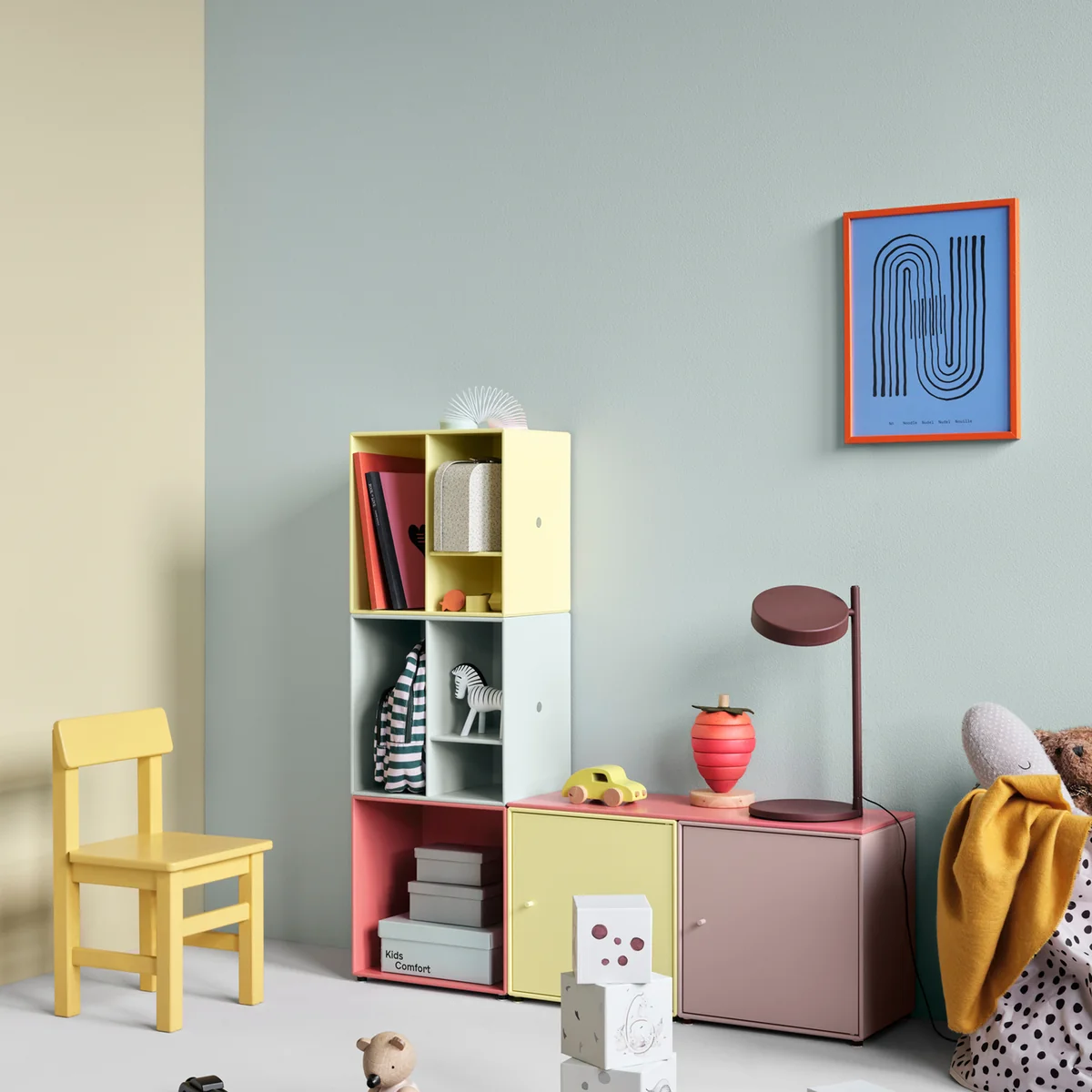 Les modules d'étagères de la Mini série sont combinables entre eux de manière flexible et peuvent être entièrement assemblés et étendus selon les souhaits de chacun.
