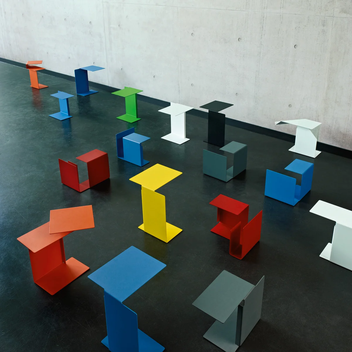 Une table d'appoint Un bureau debout Support pour ordinateur portable Une bibliothèque de référence La série de tables en tôle d'acier de Konstantin Grcic est ouverte à de nombreuses interprétations et utilisations - mais surtout à l'imagination. Tout comme les mots sont créés à partir de lettres, les tables Diana se regroupent pour former des contextes visuels toujours nouveaux avec d'autres meubles et objets. Avec l'alphabet Diana de A à F (c'est le nombre de variantes de la table), un salon peut se transformer en café ou en un mot d'une toute nouvelle langue, très personnelle.