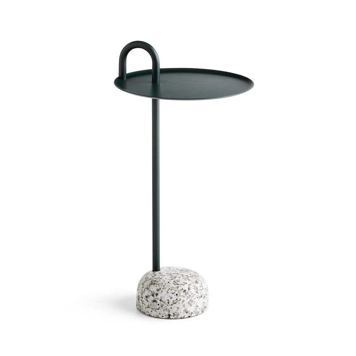 La table d'appoint Bowler de HAY est un design du designer Shane Schneck et séduit par sa forme particulière et la combinaison harmonieuse des matériaux. La table d'appoint est en tube d'acier qui traverse le plateau de la table ronde et se plie vers le haut pour former une poignée pratique. Sa base est en granit, ce qui lui donne une texture rugueuse et en même temps offre une stabilité. Néanmoins, la table est suffisamment légère pour être facilement transportée. La table de quilles peut être placée à côté du canapé ainsi qu'une table de chevet à côté du lit.
