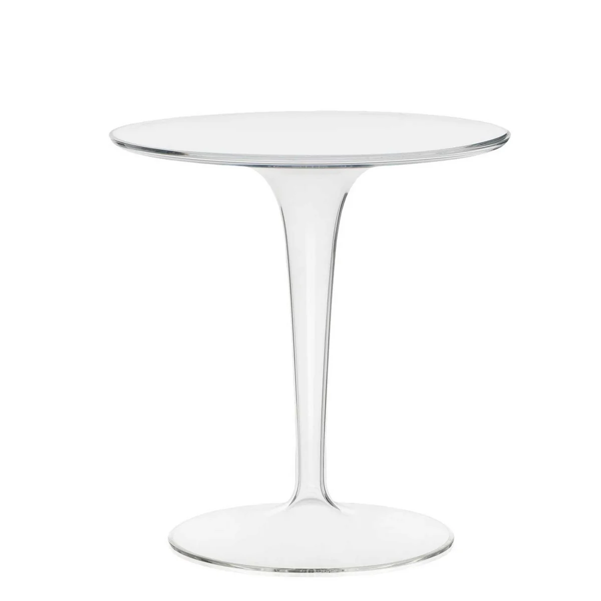 La combinaison du plateau de table transparent et du pied de table creux transparent de la Tip Top confère de la profondeur à la structure de la pièce de designer de Kartell .