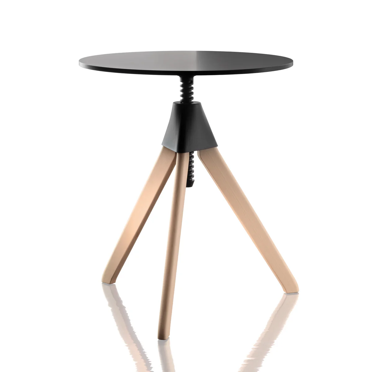 La table d'appoint Topsy de Magis est réglable entre 64,5 et 80,5 cm, grâce à sa construction bien pensée et son vérin à vis à tendance industrielle.
