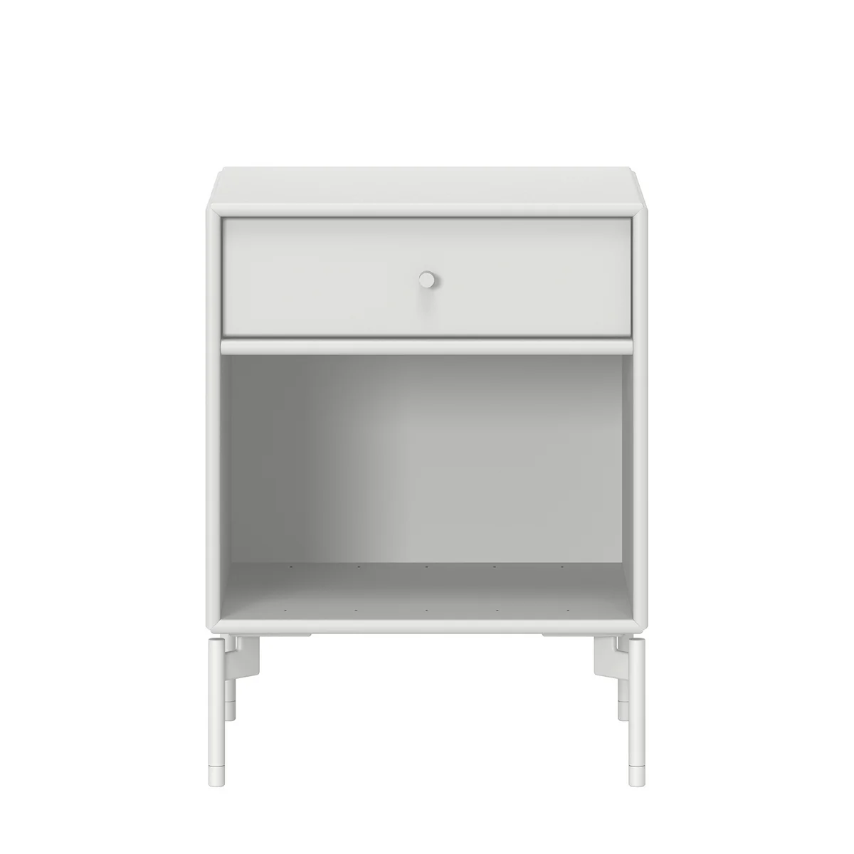 La table de chevet est en MDF 12 mm et est disponible dans toutes les couleurs Montana. Vous avez le choix entre une table à quatre pieds ou un piédestal. Grâce à une ferrure de suspension, Dream peut également être fixé au mur et quatre roulettes rendent la table de chevet particulièrement flexible.