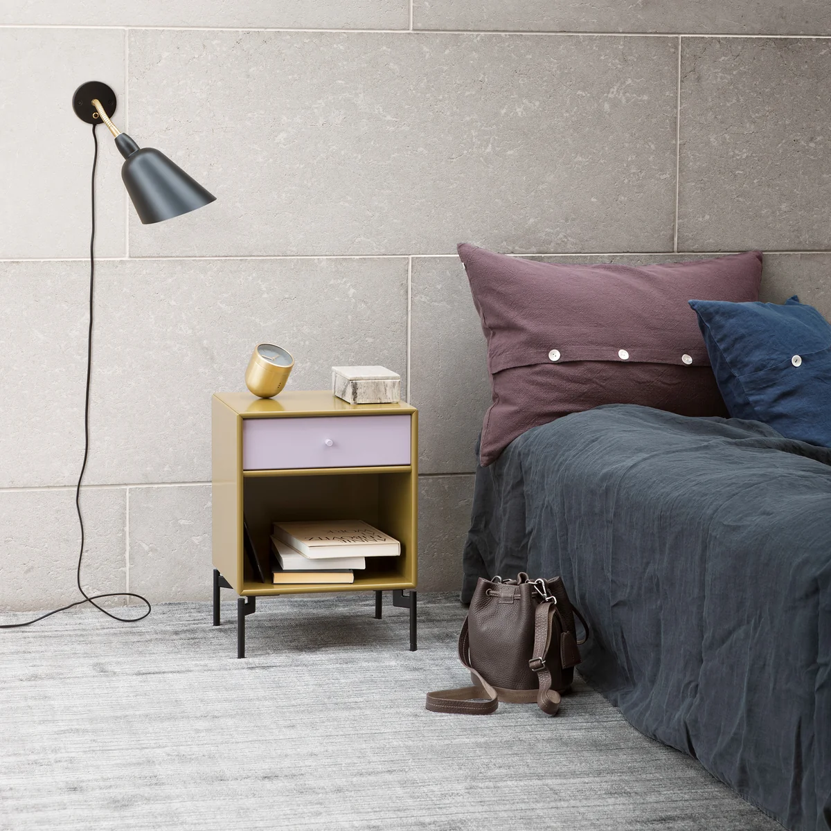 Dream by Montana est une table de chevet avec tiroir et étagère conçue par Peter J. Lassen. La petite table d'appoint se fait très bien à côté du lit. Dans le tiroir, sur l'étagère et dans le compartiment, les livres, la bouteille d'eau, une lampe de lecture, des verres, un réveil, etc. trouvent leur place.
