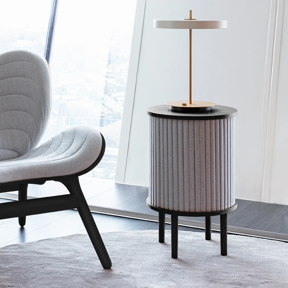 La table Audacious table d'appoint de Umage convient parfaitement comme table de chevet dans la chambre à coucher ou à cÎté du canapé. La table d'appoint est une solution pratique avec un espace de rangement pour les petits objets et les souvenirs.