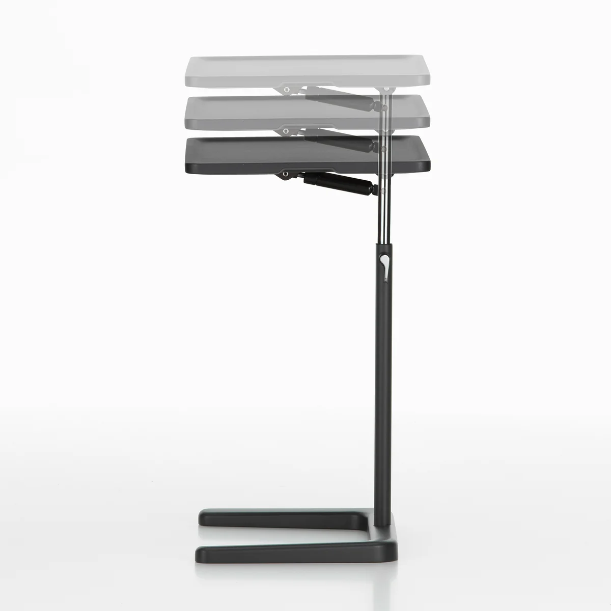 La surface de table de NesTable est réglable en hauteur et en inclinaison en continu, ainsi qu’une position de travail ergonomique est aussi réalisable depuis les canapés ou les Lounge Chairs.