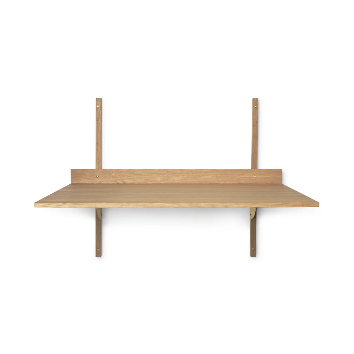 Le Sector Le bureau de Ferm Living se caractérise par sa simplicité robuste et la combinaison classique de bois et de laiton. Il peut être utilisé comme une surface indépendante ou combiné avec le Sector Les étagères murales peuvent être combinées de toutes les façons possibles pour créer un espace de travail intégré et cohérent. Un petit bord au bout de la table forme une petite surface étroite qui est idéale pour les notes manuscrites ou une photo préférée.