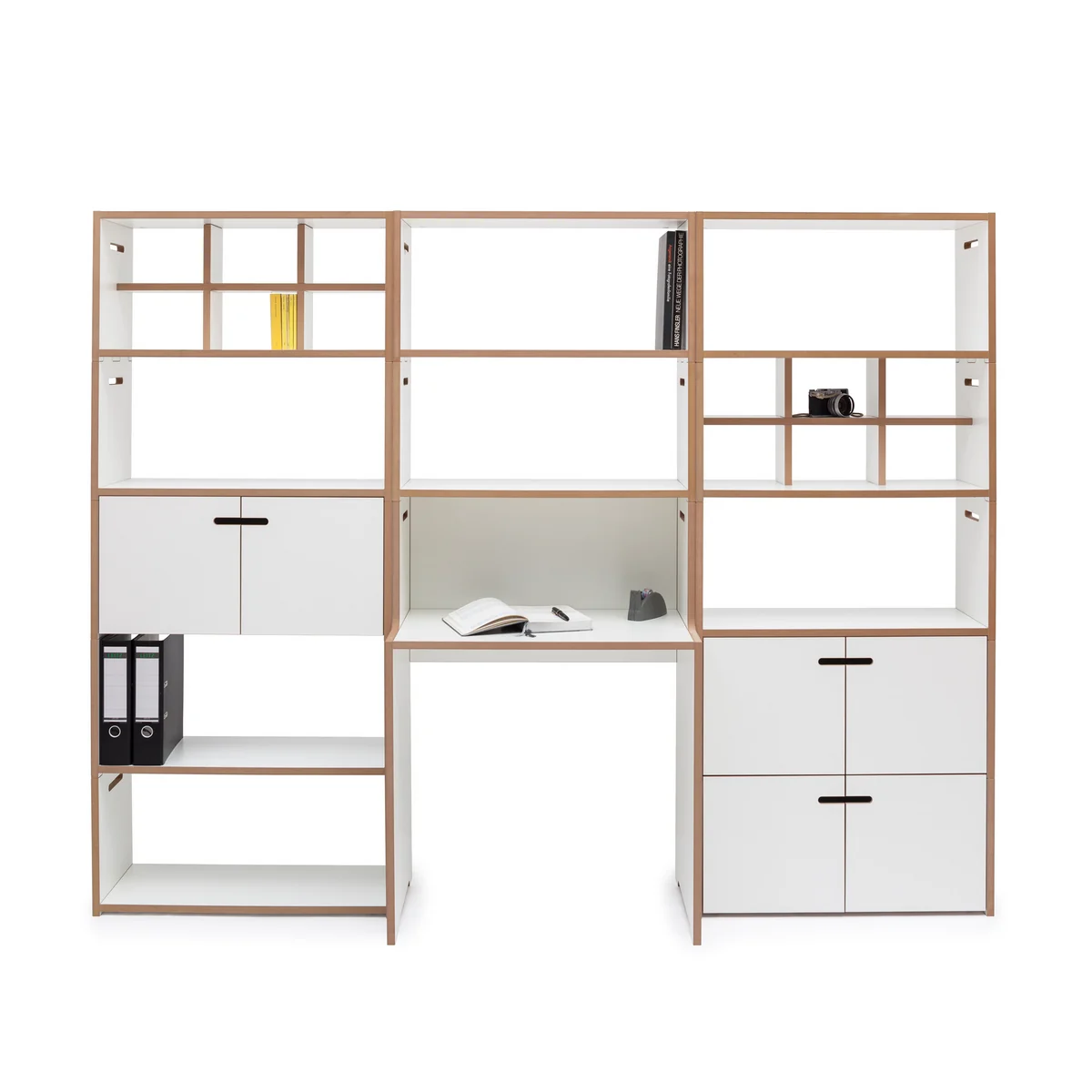 schreiben est le nom d'un petit bureau Tojo compact conçu par Dirk Frömchen. Il s'intègre parfaitement dans le système d'étagères à hauts rayonnages de Tojo et peut être complété par un couvercle. Le bureau lui-même devient ainsi un système d'étagères modulaire et, en plus d'une étagère pour l'ordinateur portable pour l'apprentissage et le travail, offre également un espace de rangement pour les ustensiles de bureau et les livres.